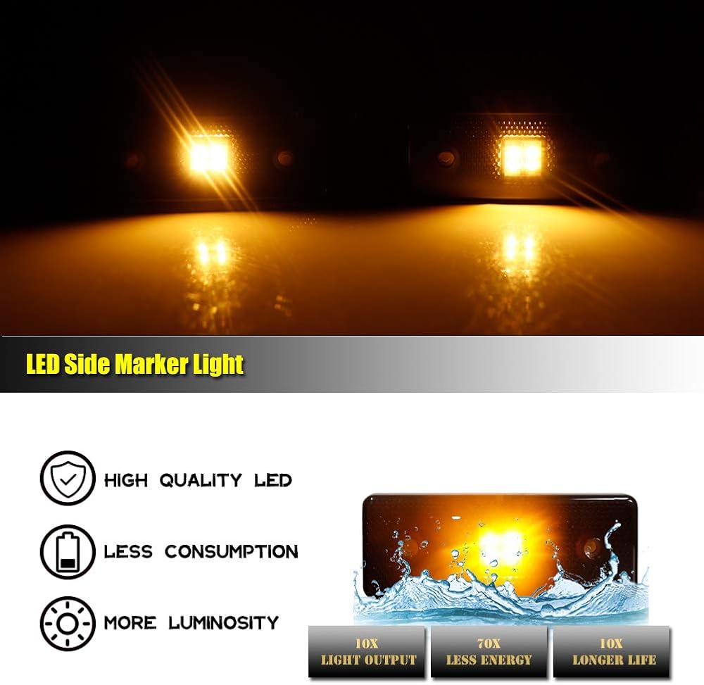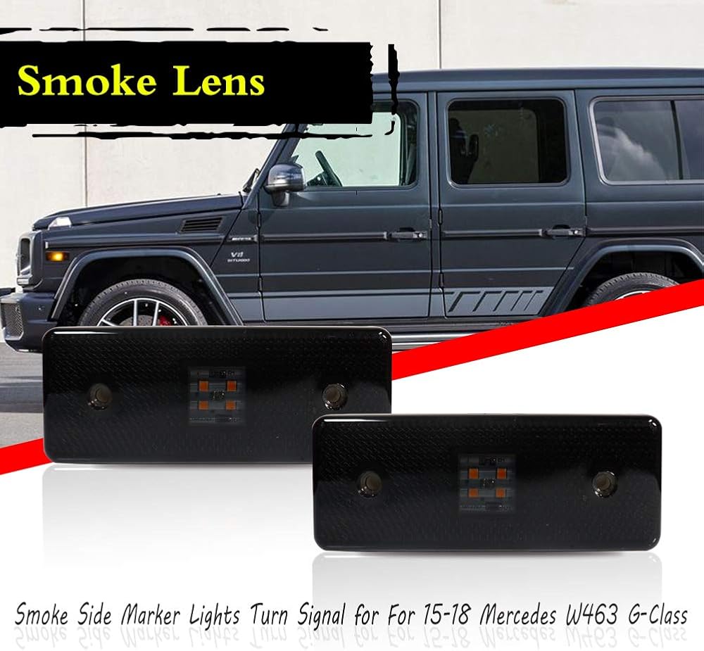 ADIIL Smoked Lens LED Side Marker Light Kit Compatible with 2015-2018 Mercedes W463 G-Class G550 G63 G65 AMG, Replace Front/Back OEM Sidemarker Lamps… (Front Amber Lights)