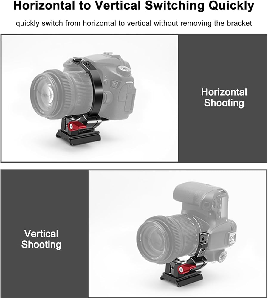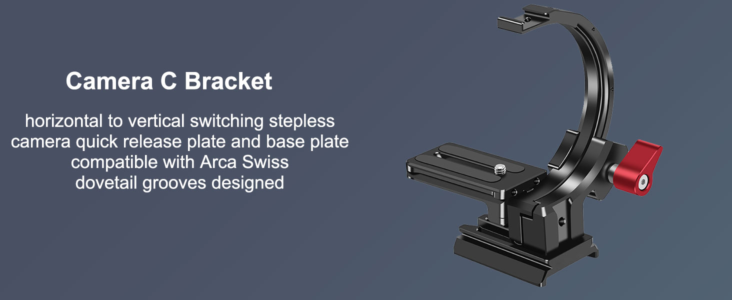 Universal C shape horizontal vertical camera mount for most cameras, and fits with lens max outer diameter is 94mm/3.7inch, lense center to bottom distance is within 36.7-50mm