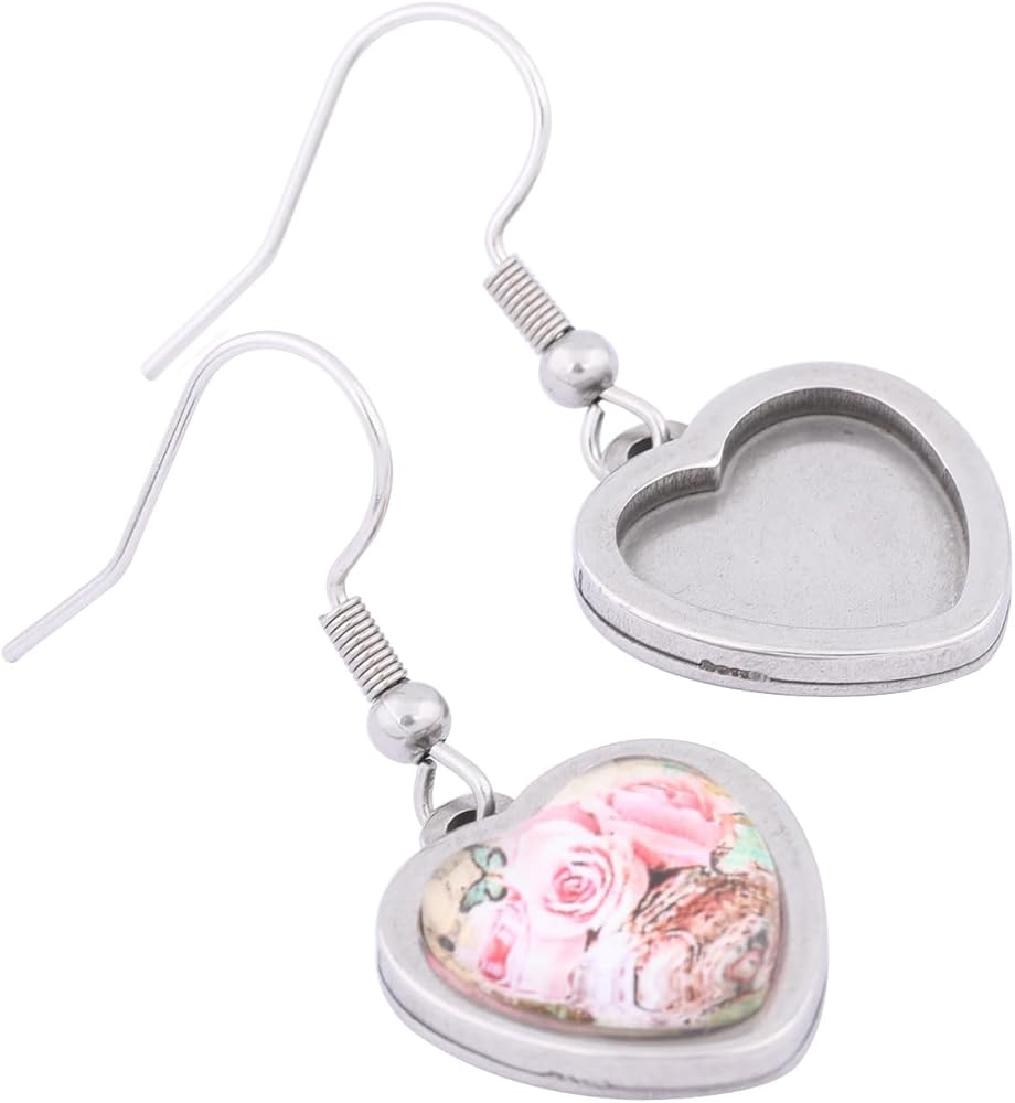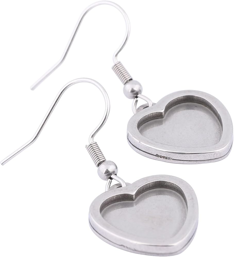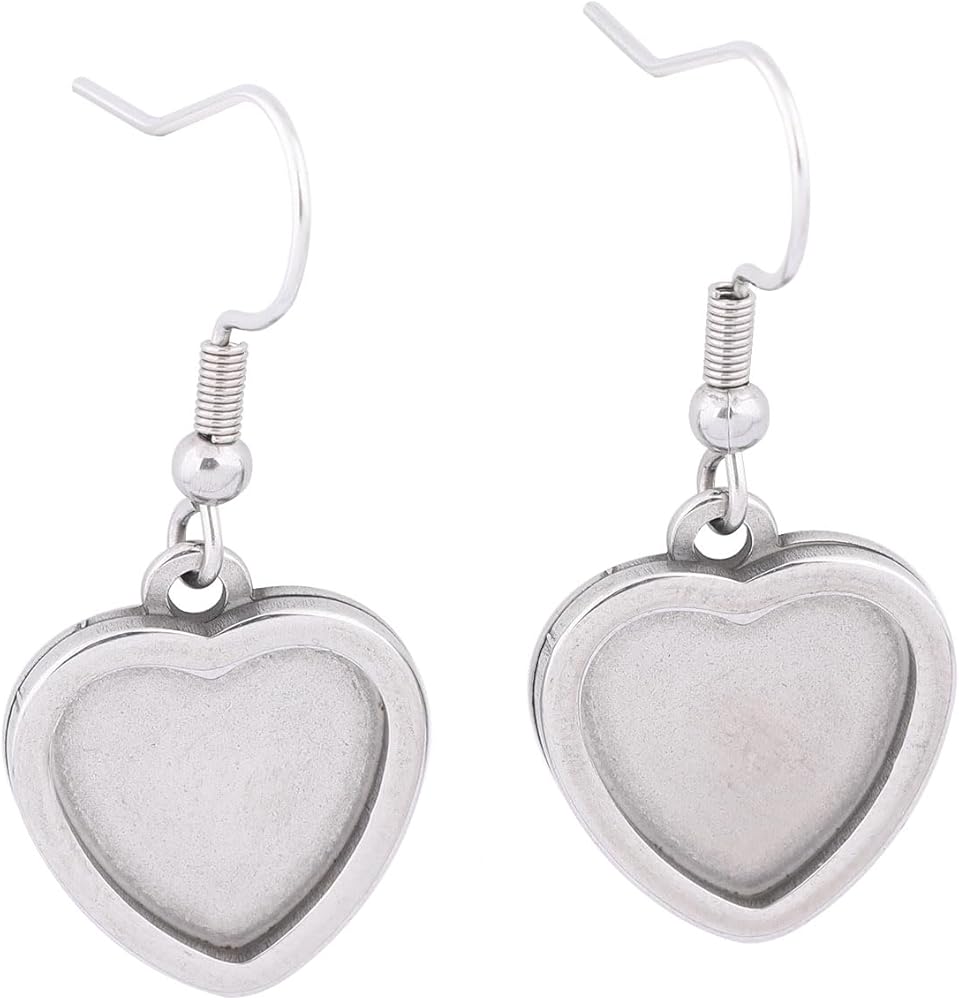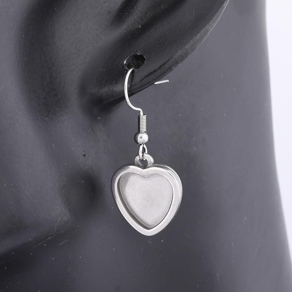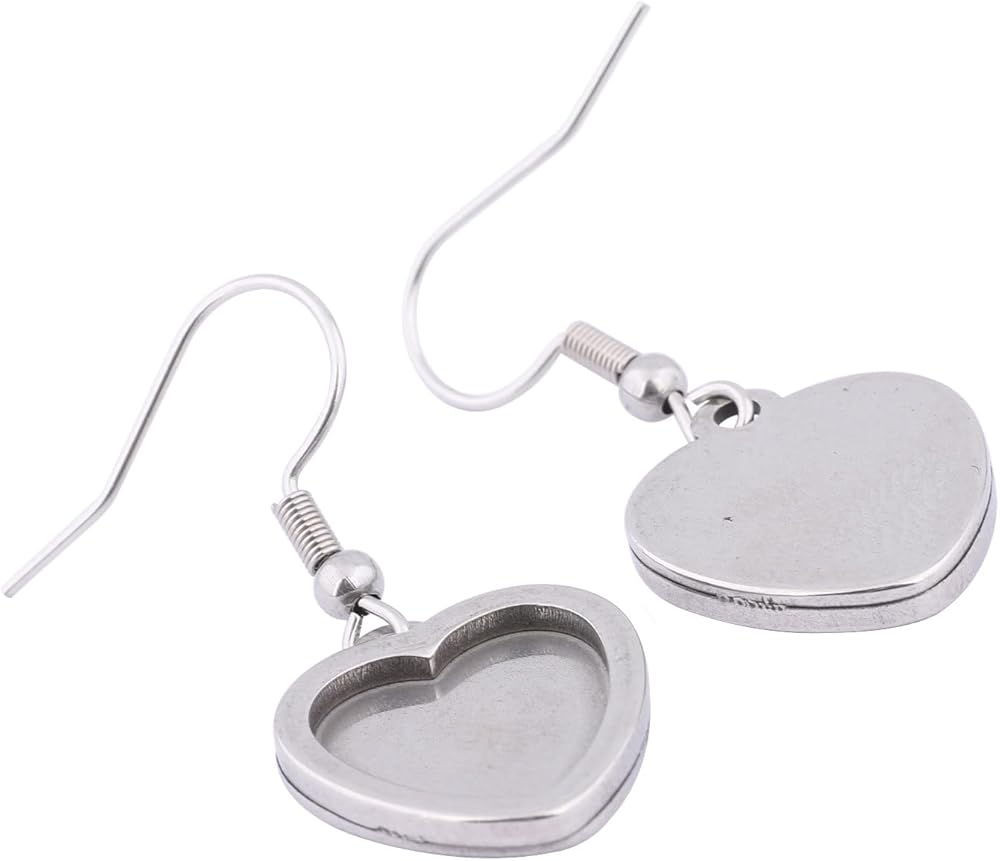 20pcs Stainless Steel Fit 12mm Heart Cabochon Earring Setting Tray Blanks DIY Bezels for Jewelry Making Supplies