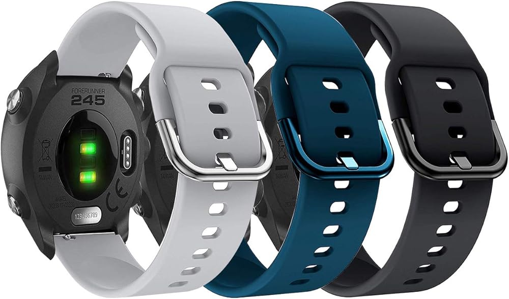 Compatible with Garmin Forerunner 245/Vivomove Sport (Venu 2 Plus 43mm) 20mm Band, Silicone Wrist Strap Replacement Accessories Band for Forerunner 245 Music (Dark Blue+Gray+Black)