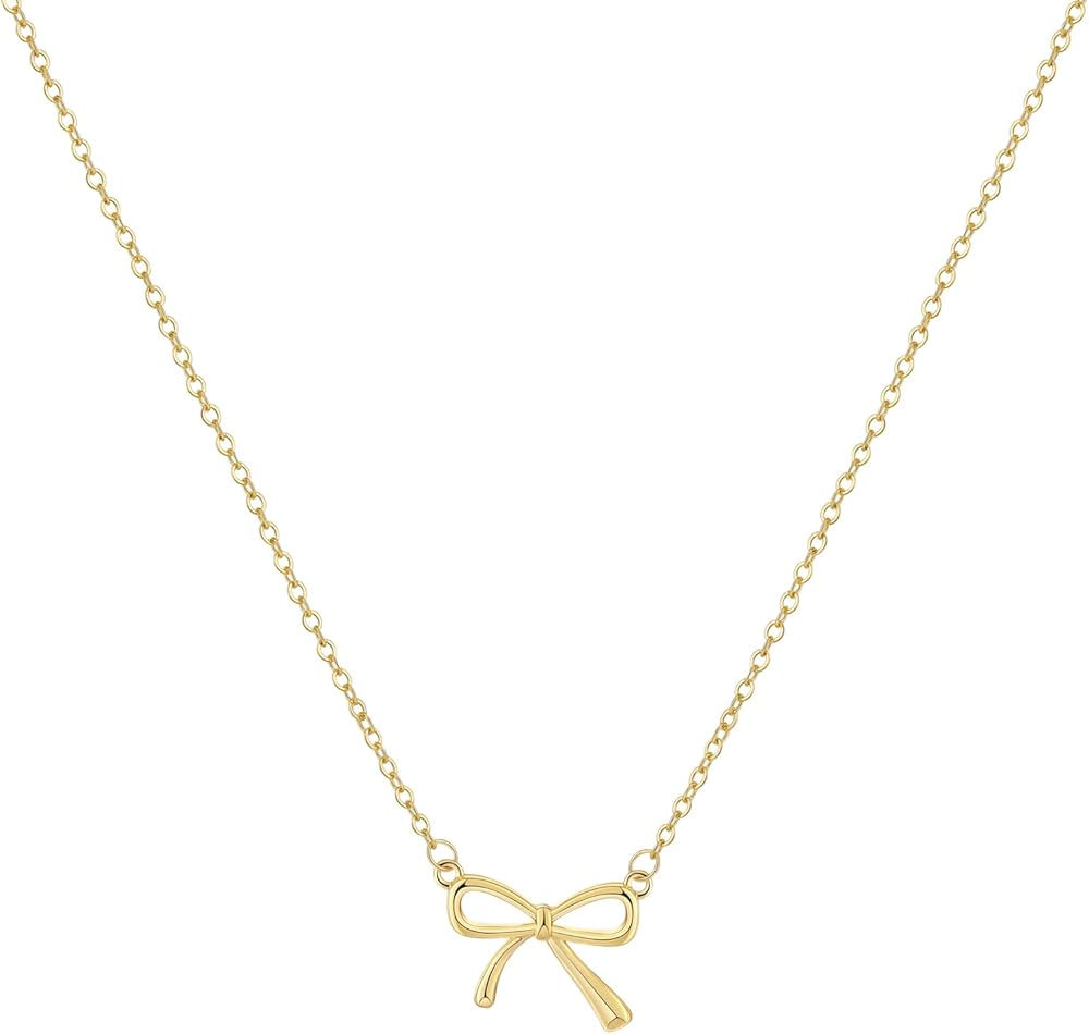 Premium Quality: All of Carovo's products are Handmade and certified 14K gold plated.This dainty Bow pendant Necklace is 100% Hypoallergenic and Nickel Free,Durable and long lasting.