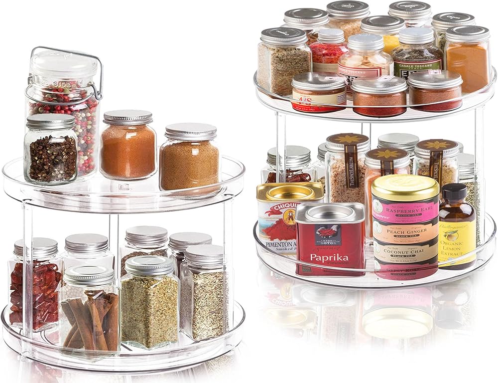 Organize Your Home - 2 tier lazy susan organizer perfect for your kitchen table,countertop,cupboard,pantry,shelf,outdoor dining table.Also great for your bathroom, office, cabinet or vanity.