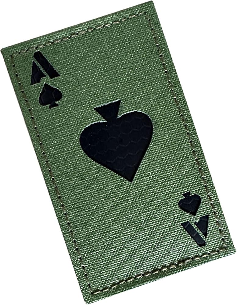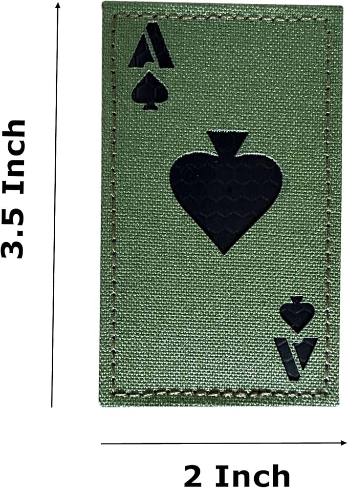 JUJUPUPS 2x3.5 Infrared IR Ace of Spades Death Dead Card Patches Tactical Vest Patch Hook-Fastener Backing (OD Green)