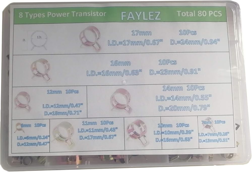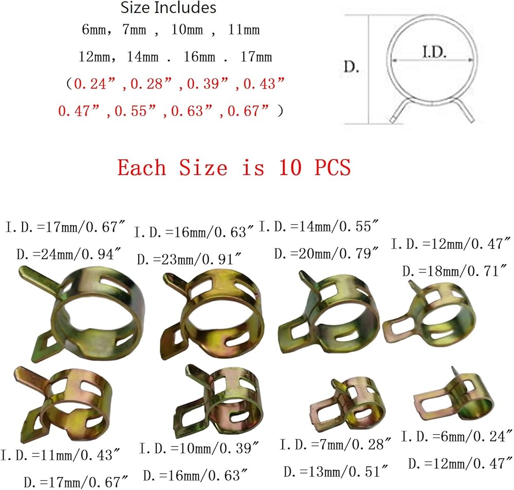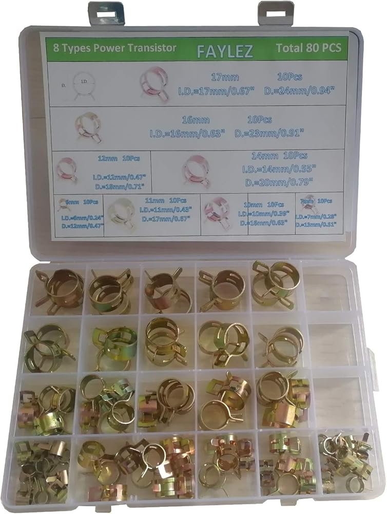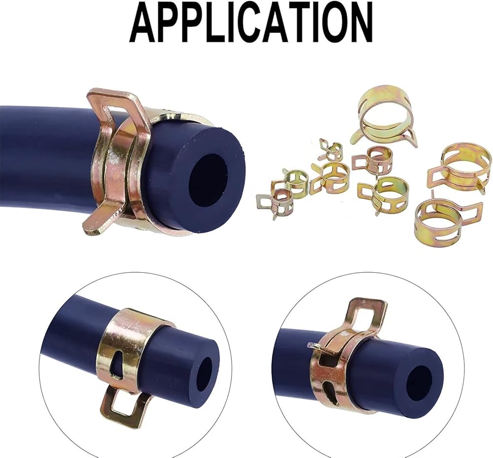 FAYLEZ 80 PCS 6/7/10/11/12/14/16/17mm Spring Clips Fuel Line Hose Clips Water Pipe Air Tube Silicone Vacuum Hose Clamp Fastener