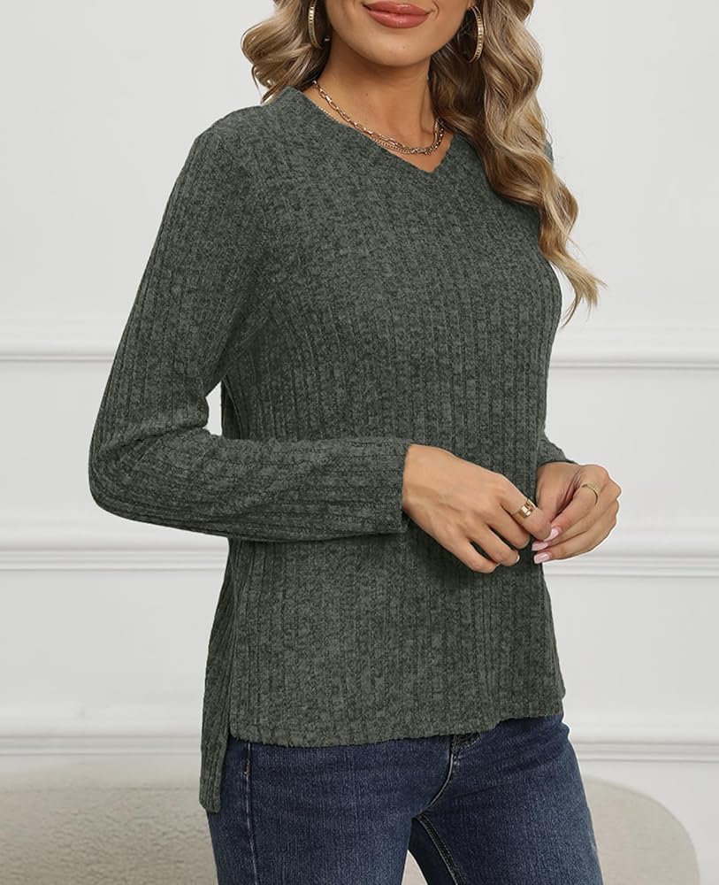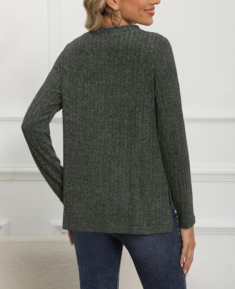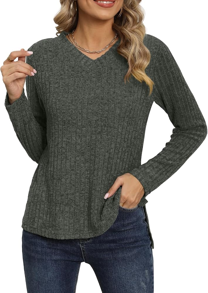 ❤ 【 Features 】 Long sleeves, round neck, invisible stripe detail, loose casual style, womens versatile round neck top gives you an effortless look! It fits most ladies' figures and takes your look from comfortable to chic and stylish.
