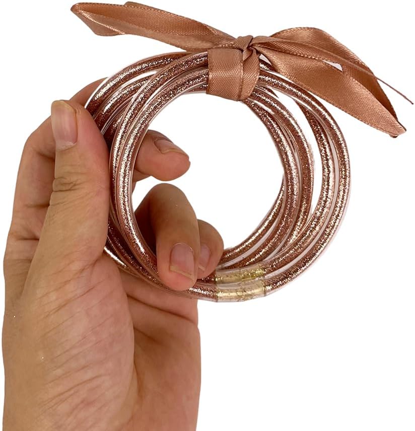 【Meaningful Gift】:This glitter jelly bangle bracelet set is an ideal gift for your friends and families on the Birthday, Parties, Holiday, Christmas, Thanksgiving, Mother's Day, Anniversary, Wedding and other special day.