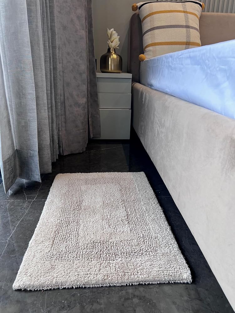 MATERIAL: High quality thicker Cotton material absorbs moisture quickly and especially absorbent, keeping your bathroom dry and tidy throughout the day; The thicker soft plush material makes you feel stepping on the clouds; You and your family will have a cozy and fluffy, warm and soft experience