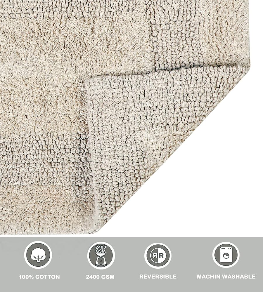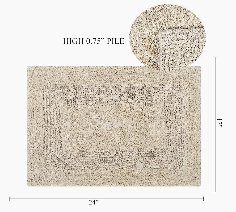 KEMA Soft Bath Mat Rug 17"x24" White, 100% Pure Cotton, Super Soft Bath Rugs, Plush & Absorbent, Hand Tufted Heavy Weight Construction, Full Reversible Step Out Rugs