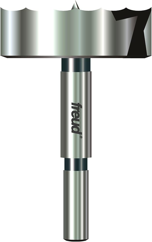 Precision Shear Forstner Bits feature a double-ground, razor-sharp serrated edge that slices throughout the rotation of the bit for less splintering and chipping, producingflawless flat-bottom holes. This unique geomtric design has multiple cutting edges that produce greater shearing action, allowing for faster rotational speeds and more efficient cutting. Competitive forstner bit designs produce small chips and dust that collect in the cutting area, increasing friction and heat, thus causing the bit to dull quickly. Those designs also create holes with rough edges that require sanding. In addition to serrated edges, Precision Shear Forstner Bits include a hardened steel body for longer life and sharper edge, an ultra sharp spur to ensure accurate holes and less "walking", and steep angled cutting edges to produce holes that are smooth and flat.
