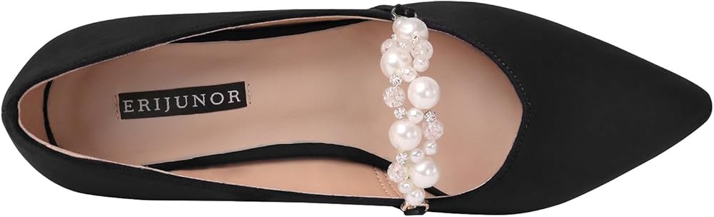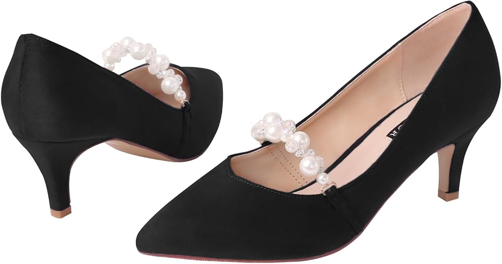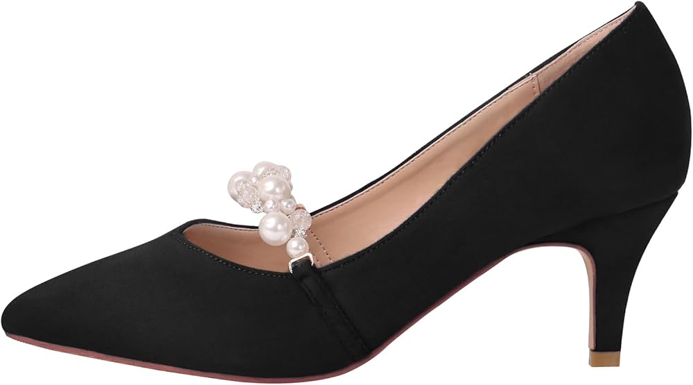 ERIJUNOR E3122 Women Faux Suede Pearl Pumps Comfortable Kitten Heel Evening Prom Wedding Shoes