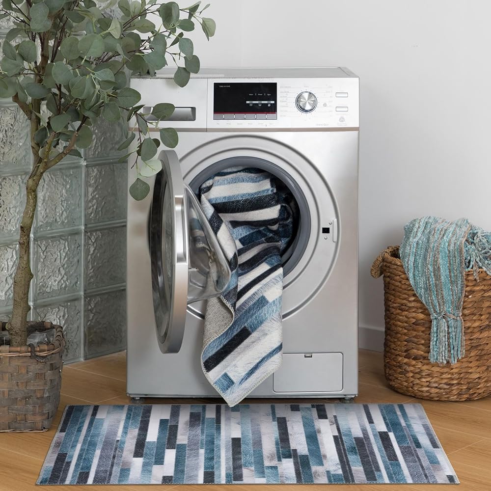 Machine washable: Cleaning Just Got So Much Easier. With this washable rug, you'll never have to worry about spills and stains ever again. Just pop it in the washing machine and hang it out to dry, all stress-free.