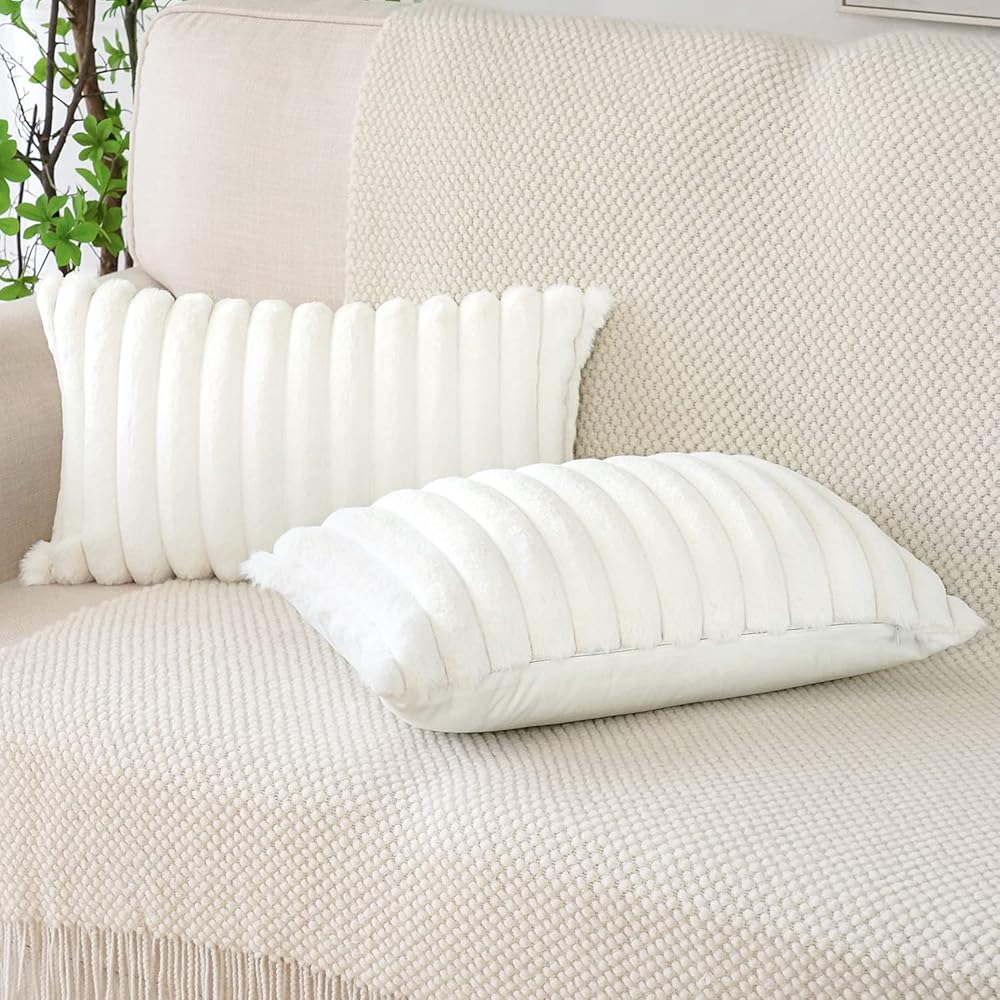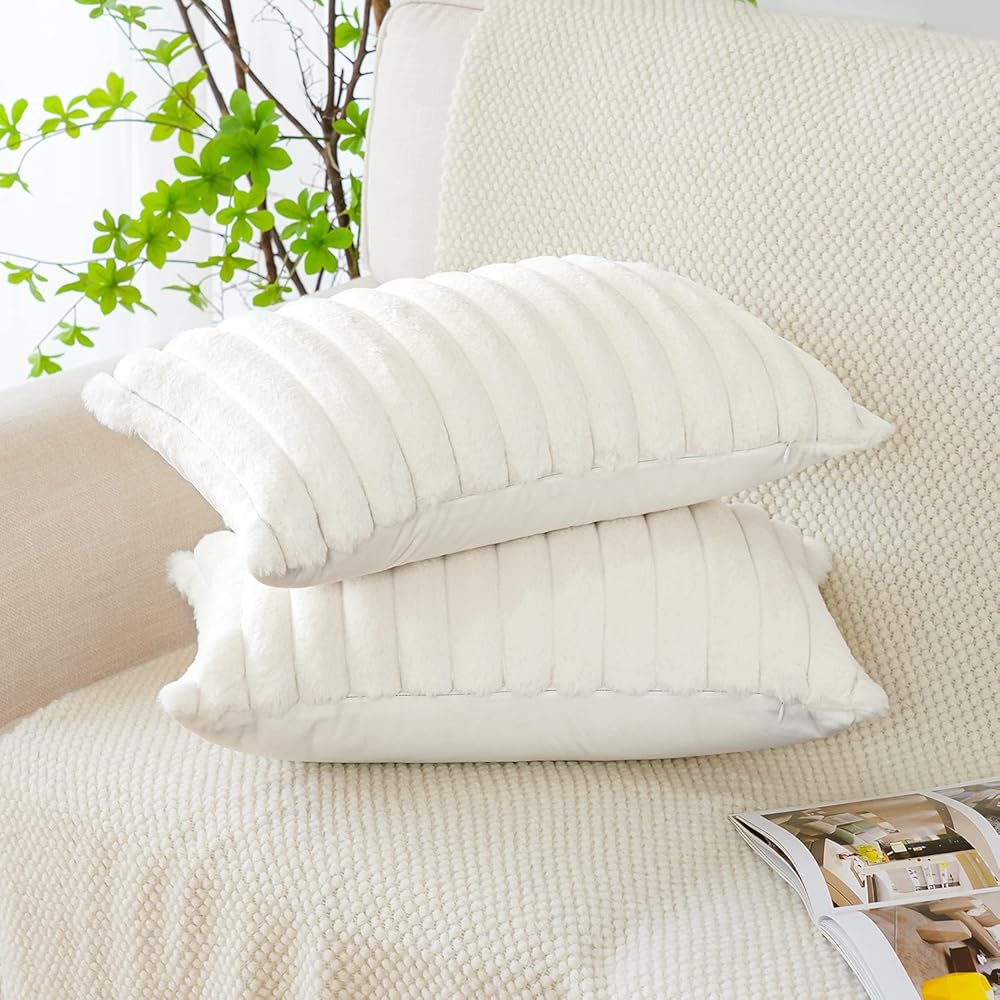 🏡SIZE/MATERIAL - 18x18 inches/45x45cm. 2 pillowcases without pillow core. Soft and comfortable velvet and faux rabbit fur.