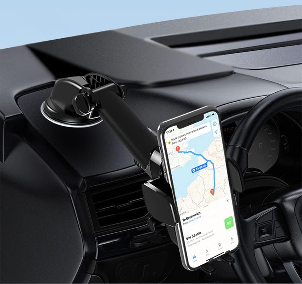 Car phone mount with a telescopic arm can extend can be adjusted to any angle.Provide you with more safer driving if you are navigating, or charging.Make you have a good time.