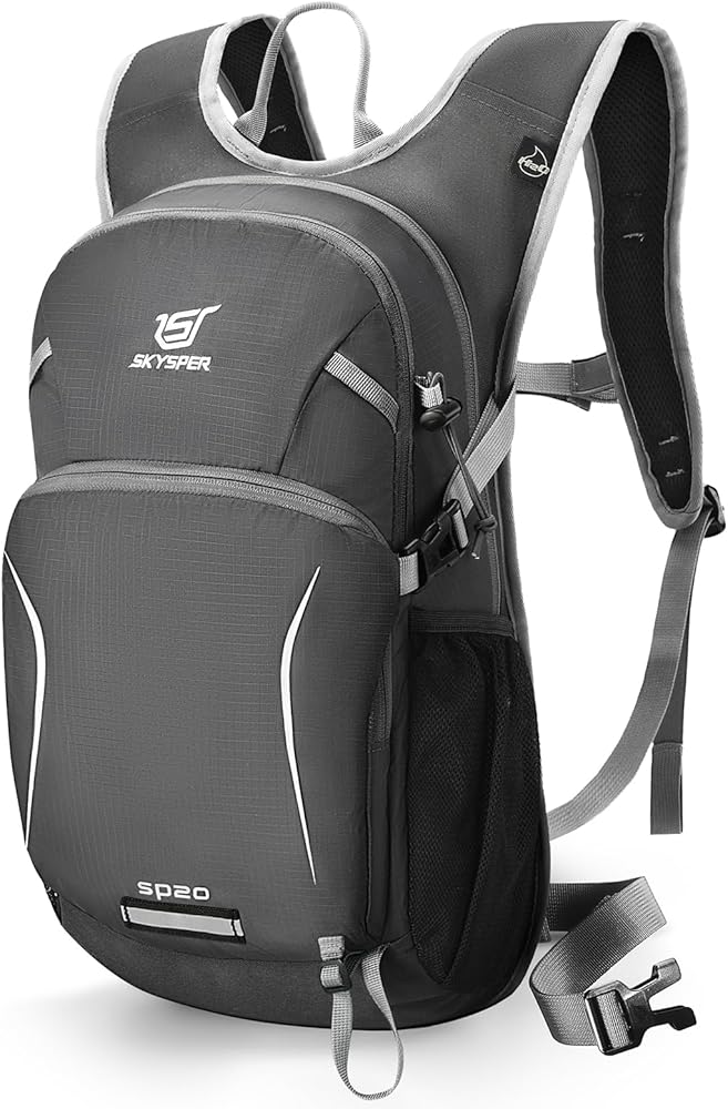 Spacious Capacity: With a generous 20-liter capacity, this lightweight daypack can easily accommodate essential items such as a 2L water bladder, energy bars, food, map, compass, flashlight, jacket, and first aid kit. The exterior also features a trekking pole hanging point for carrying 2 trekking poles.