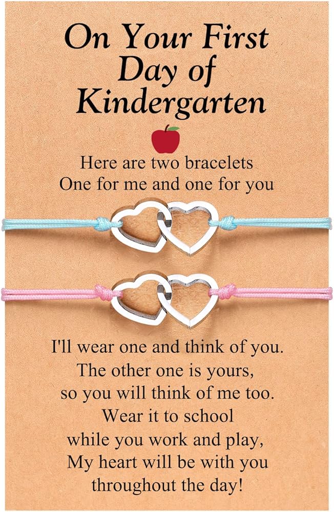 【First Day of School Bracelet】Here are two bracelets, one for me and one for you on your first day of school. Got these heart bracelets for mommy and daughter to help your girls with separation anxiety, tell your daughter that mommy is always thinking of her and always with her. A super warm gift for mother daughter on the first day of school!