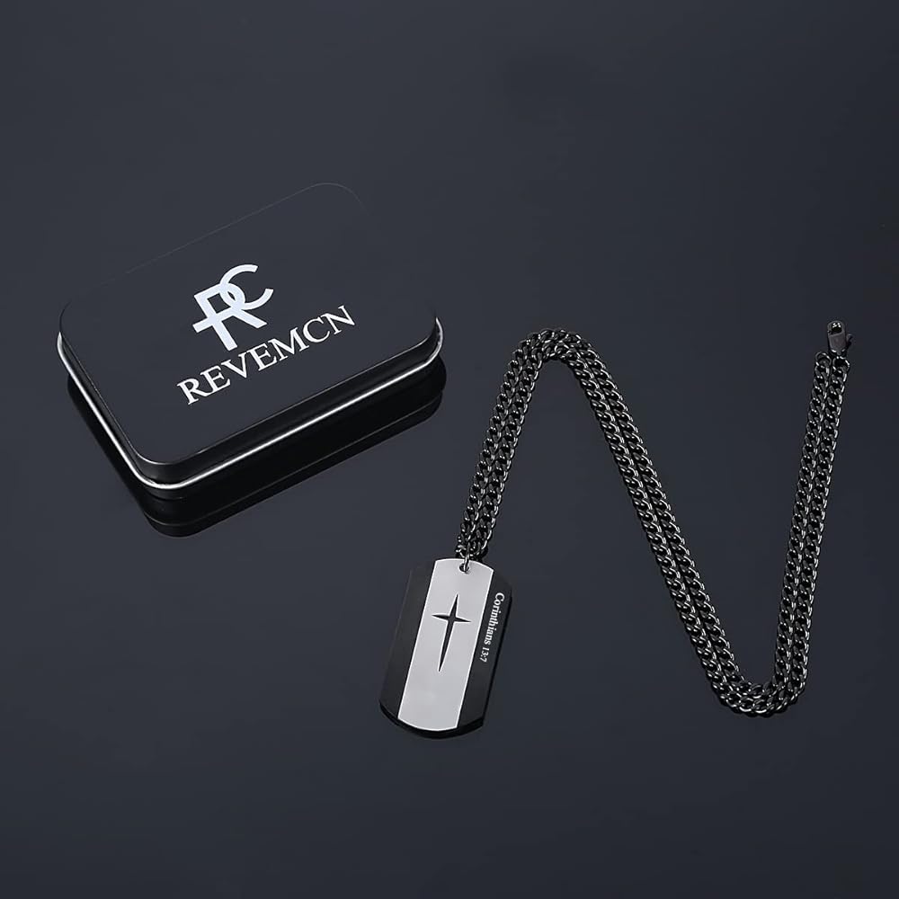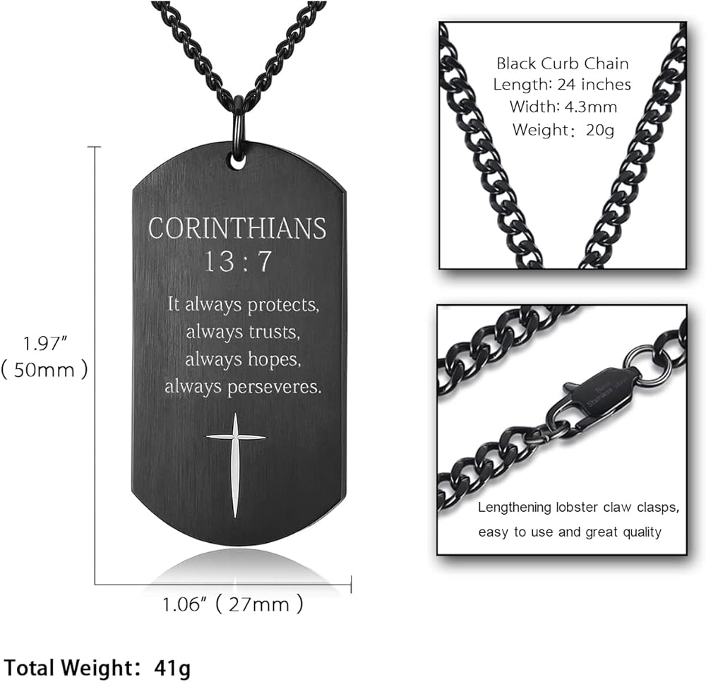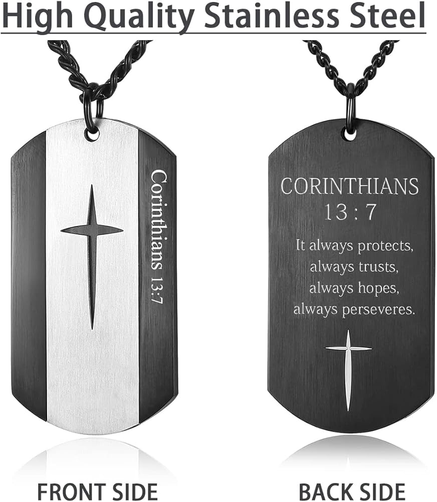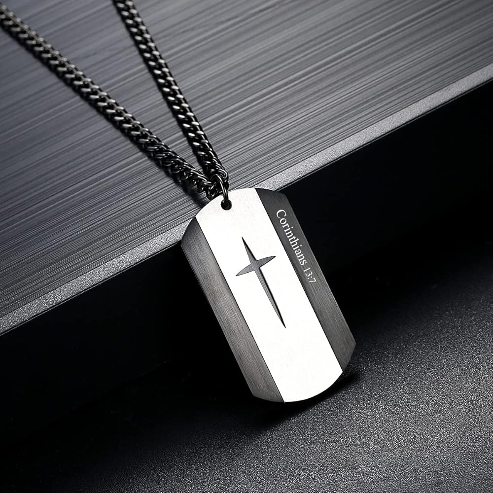 The cross dog tag pendant engraved with the Bible Verse: JOSHUA 1:9 - Be Strong and Courageous! Do Not Tremble or Be Dismayed, For the LORD Your God is With You Wherever You Go; Personalized design dog tag necklace, it represents both fashion and Christian faith.