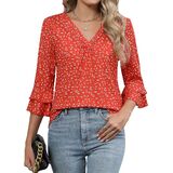 Features: Womens tunic tops comes with flowy fornt pleated and v neck tops, tulip sleeve, not see through, stretch fabric and loose fit style suitable for most body type, this dressy casual blouses is trendy and cute.