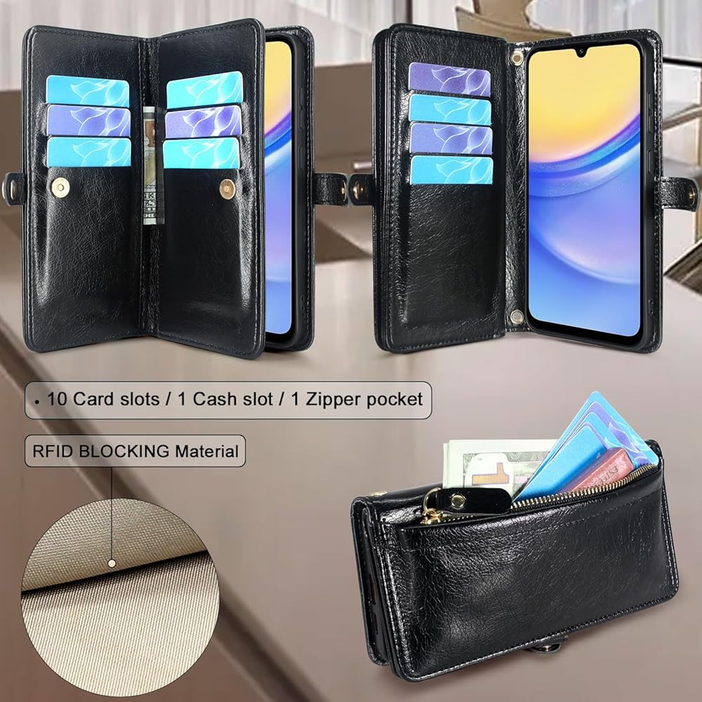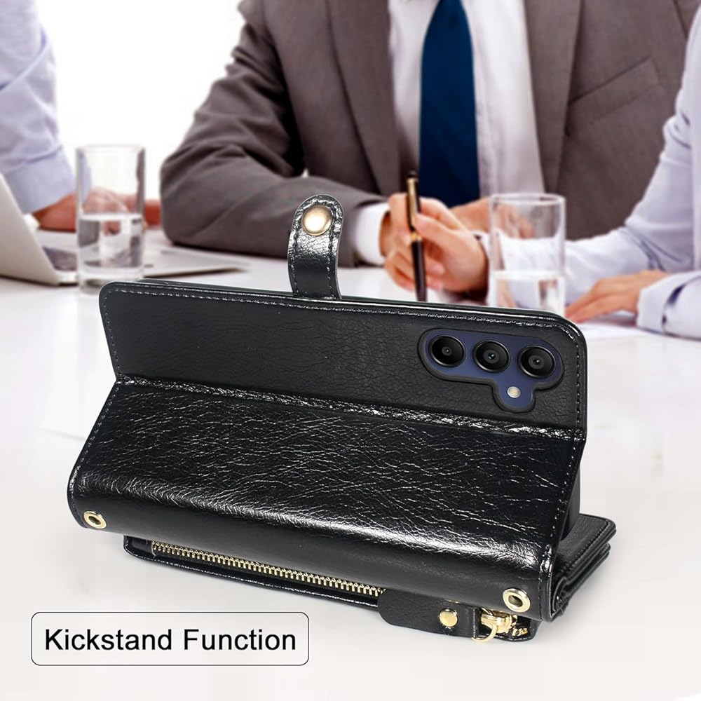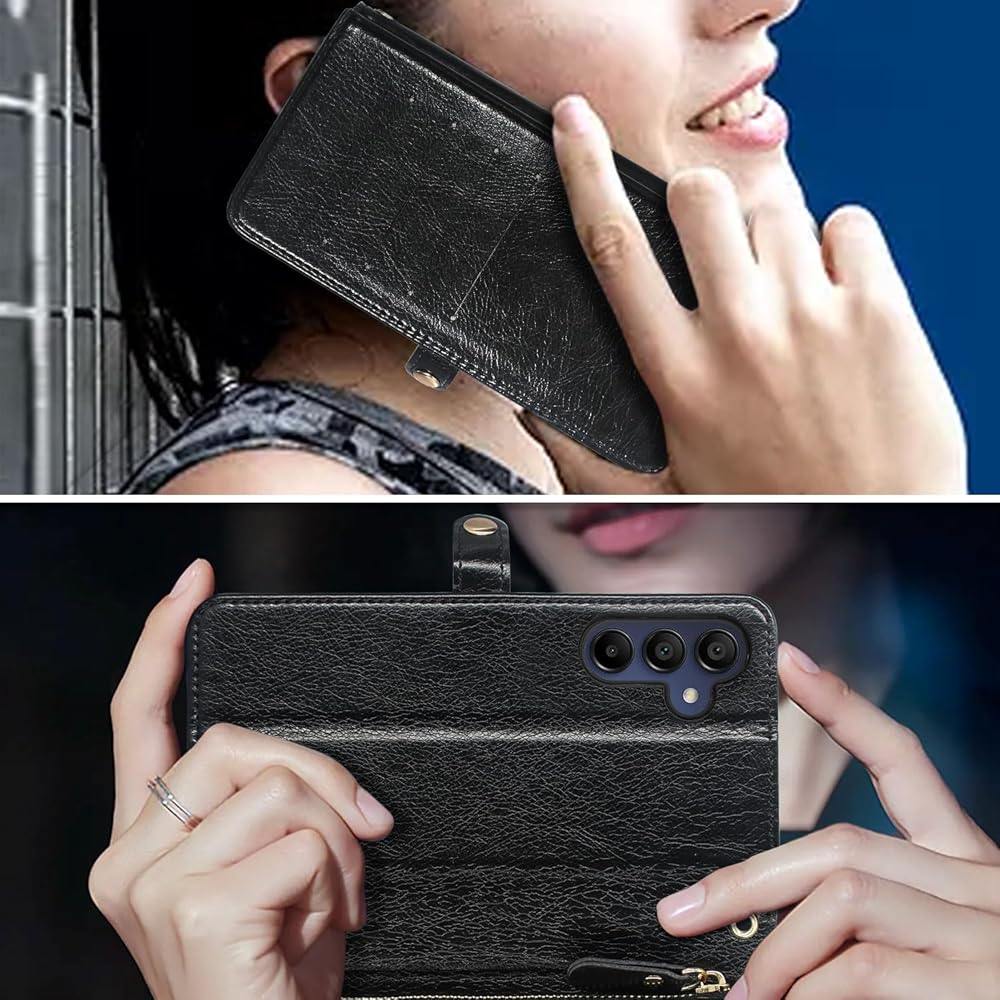 【Luxury Material】 : Made from high quality PU Leather material touch comfortable and soft, fashion zipper wallet Case fit for Samsung Galaxy A15 5G.