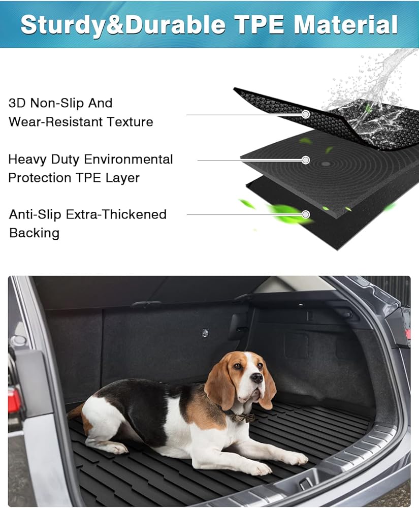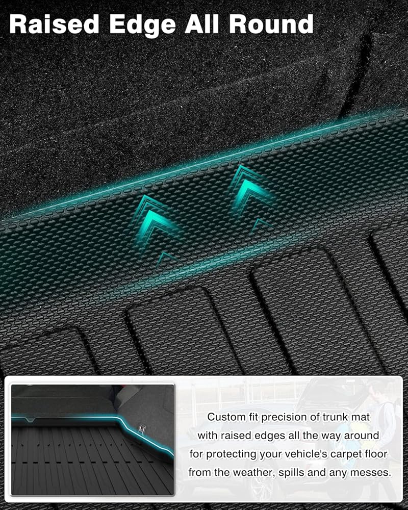 Non-slip and Trap Debris: With a textured non-slip surface and unique channels, this weatherproof cargo liner can effectively trap sand, water, mud, dirt, rain and muck. You won't have to worry about your luggage scratching or staining the original carpet thanks to the trunk liner.