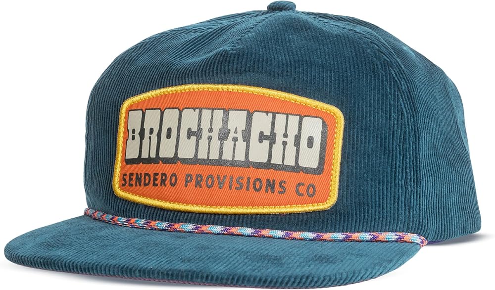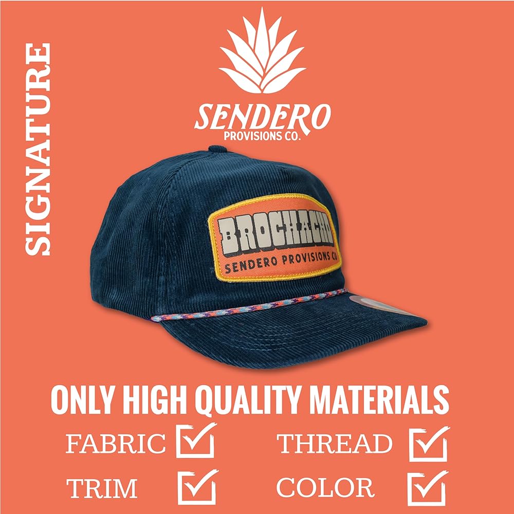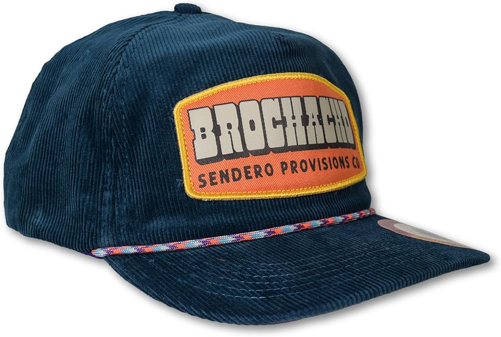 Sendero Provisions Co. SPCH124S13AZZ Brochacho Hat Blue Unisex Unstructured 5-Panel Lightweight Corduroy Screen Printed Patch Snapback Paracord Rope HatDescription: Brosky, Broseidon, Brotato, Brometheus, Brofessor, Brobi-Wan Kenobi, Teddy Bro-sevelt. Whatever floats your boat, Brochacho.Key Features: • A Name You Can Trust: We've been doing this a while now. We made our first product back in 2014 and we've been making everything better ever since. We craft each product individually and care goes into every detail. • Only High Quality Materials: We hand select every fabric, trim, thread, and color that goes into a Sendero product. We don't use blanks- we've developed our own style and unique fits that folks have come to know and expect. • Designs That Inspire: We're not trying to put “Sendero” in as many different ways as we can onto our gear. We do that sometimes, but what gets us excited is funky cool art with a Western twist and maybe a silly joke or two. • Carefully Crafted: Our hat showcases a screen printed Brochacho patch, adding a distinctive touch to your outdoor style. With its eye-catching blue and convenient snapback closure, this hat ensures a comfortable and personalized fit for your adventures.Pack Includes: (1) Sendero Provisions Co. Brochacho Snapback Hat