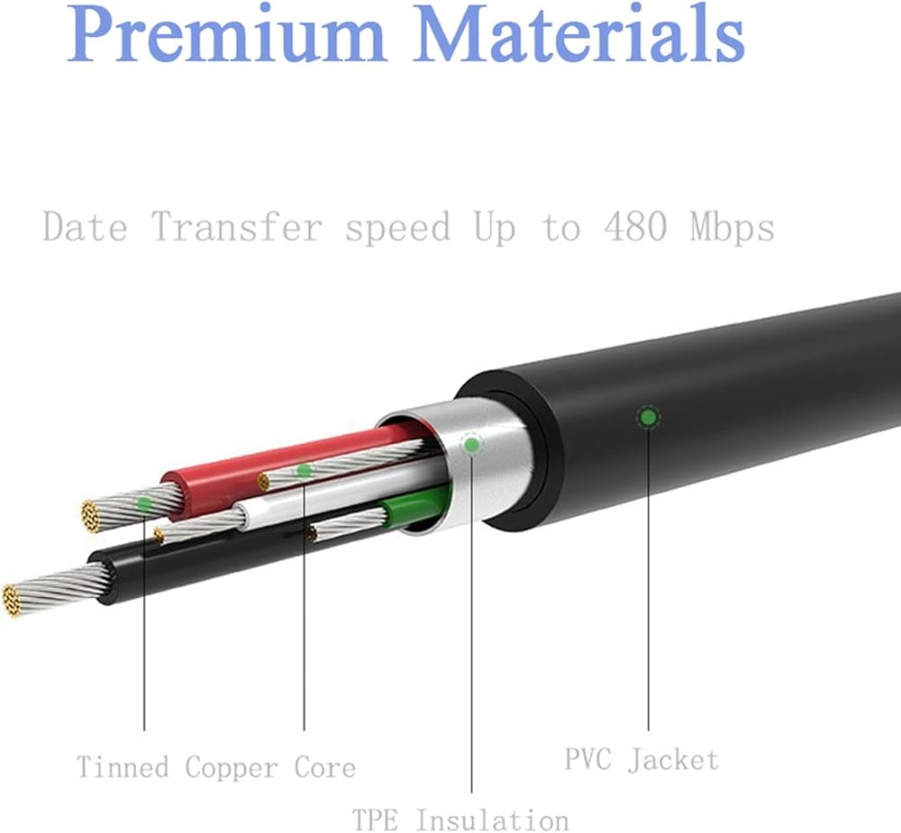 [Perfect Length] The Durable 5 Ft Charging Cord Supports MAX 2A Current and Transfer Data Up to 480-Mbps Via USB 2.0.