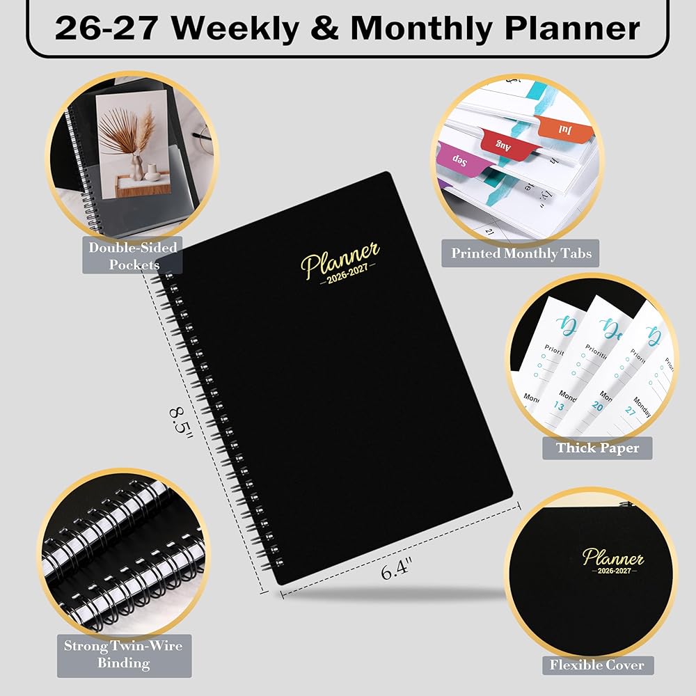 ✔ Unique Design - Classic solid black flexible cover of 2024-2025 calendar planner has soft tactility, strong twin-wire binding and round corner design make it sturdy to use and easy to carry. Moreover, the back pocket can keep your scatter items like tickets, cards, invoice and more.