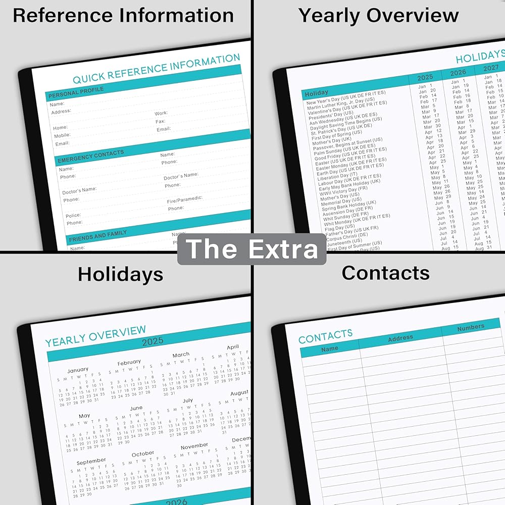 ✔ More Details – Extra 21 notes pages at the end of this 2024-2025 weekly and monthly planner to help you write down your ideas, thoughts, notes, gratitude or happy things in detail. Premium thicker paper to reduce leakage, erase fraying and shade issues, friendly to use.