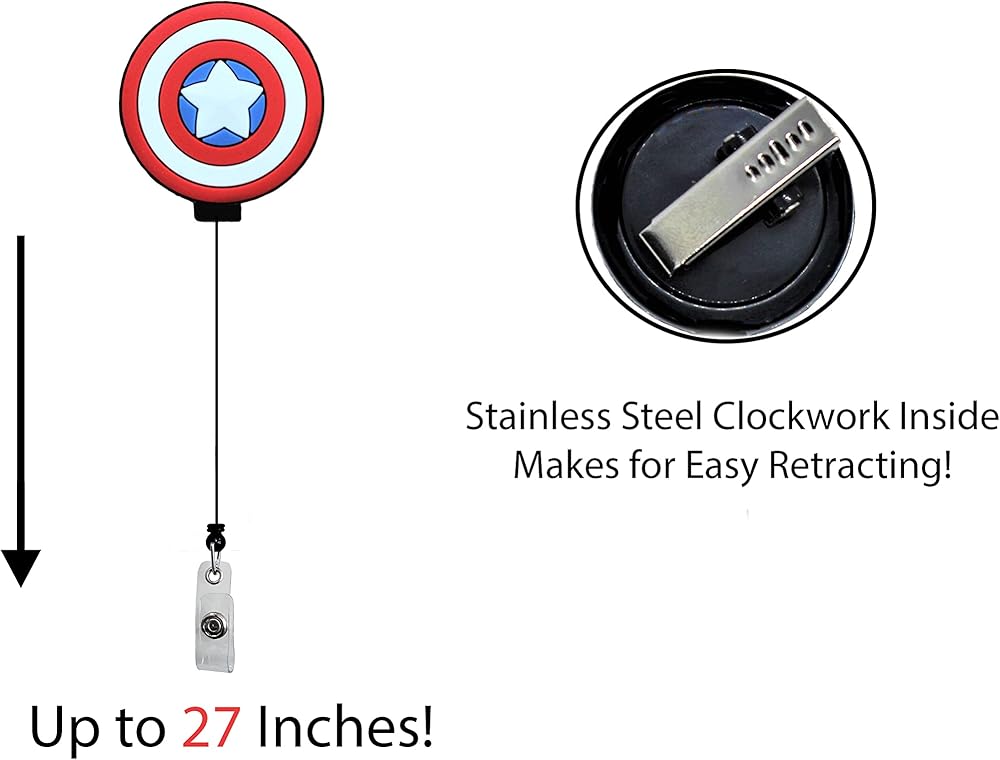 The Superhero emblems add interest and quality to your outfit. Easy access to your identification credentials. With a retractable nylon cord that retracts 26 inches