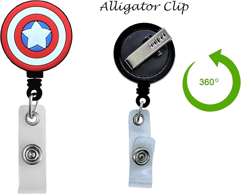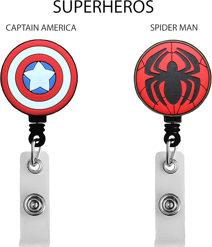 Superhero Up your uniform! This badge reel has a spring loaded alligator clip attached to a black rotating base allowing it to be securely fastened in any direction. The robust nylon cord extends up to 26 inches and easily retracts at any point. The draw is smooth. A snapping clear vinyl strap fastens your ID to the badge reel and easily accommodates multiple ID badges if needed. The character emblems are high quality graphic images printed; NOT stickers. All pieces are affixed with an extremely durable, industrial adhesive. Easily cleaned with a damp cloth. Do not submerge in water as it may damage metal components. IDEAL FOR USE IN SCHOOL, OFFICE, OR CORPORATE GIFTS - Are you tired of fumbling for your ID card to enter the building each morning?
