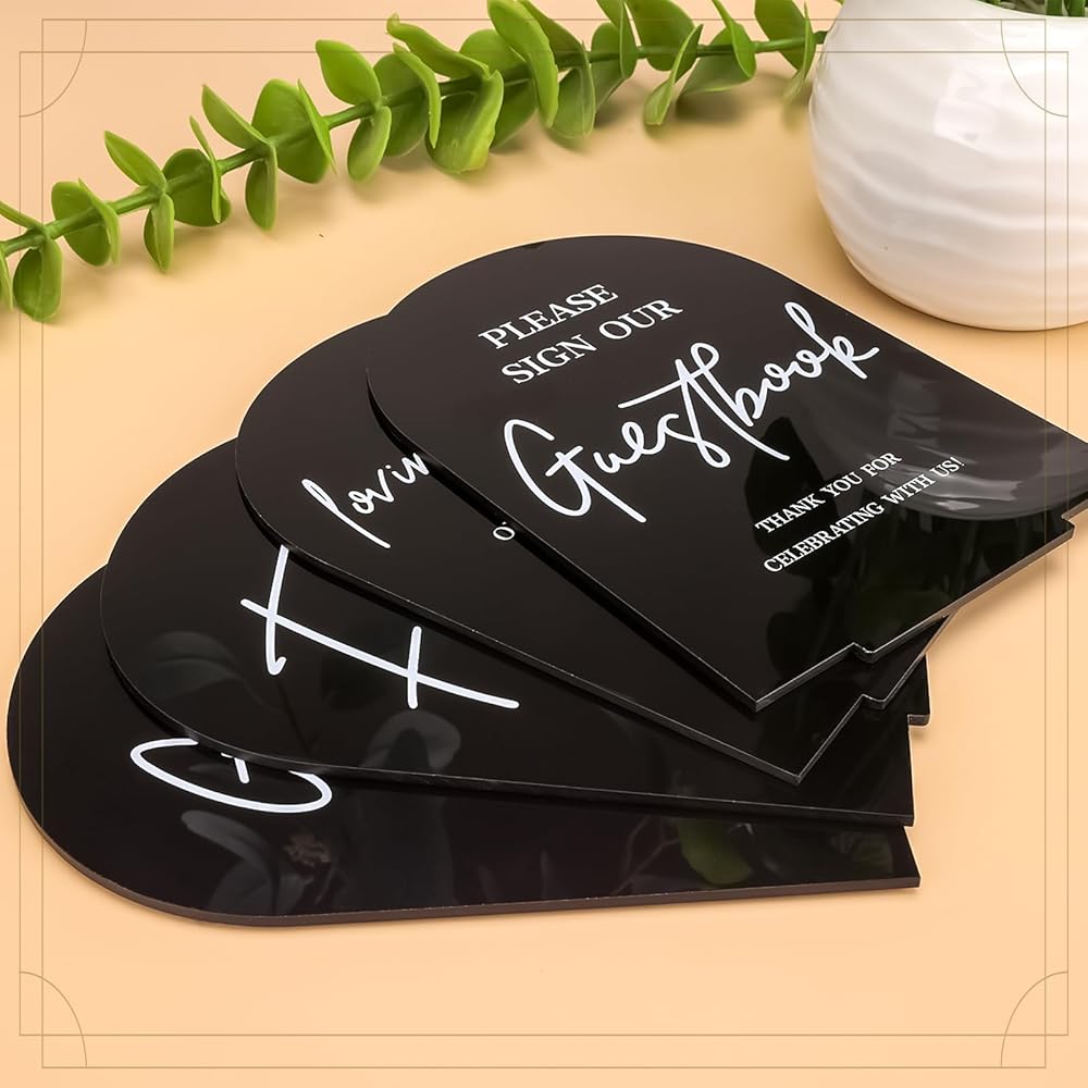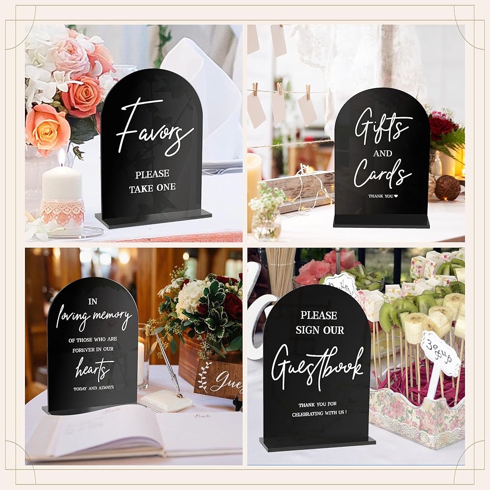 Set of 4: The package comes with 4 pieces of acrylic wedding entrance signs with stable holders, satisfying all your needs for wedding ceremony decor. Please Sign Our Guestbook Sign | Favors Please Take One | Wedding Memorial Sign | Cards and Gift Table Sign.