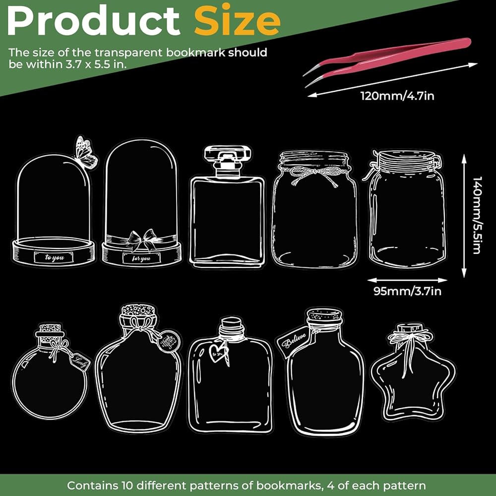 Quantity: Our dried flower bookmark kit contains 40 glass bottle shaped bookmarks, 40 plant stickers and a pair of tweezers, which is great value for money. These clear bookmarks for pressed flowers are plentiful, so you can get creative and make lots of DIY bookmarks.