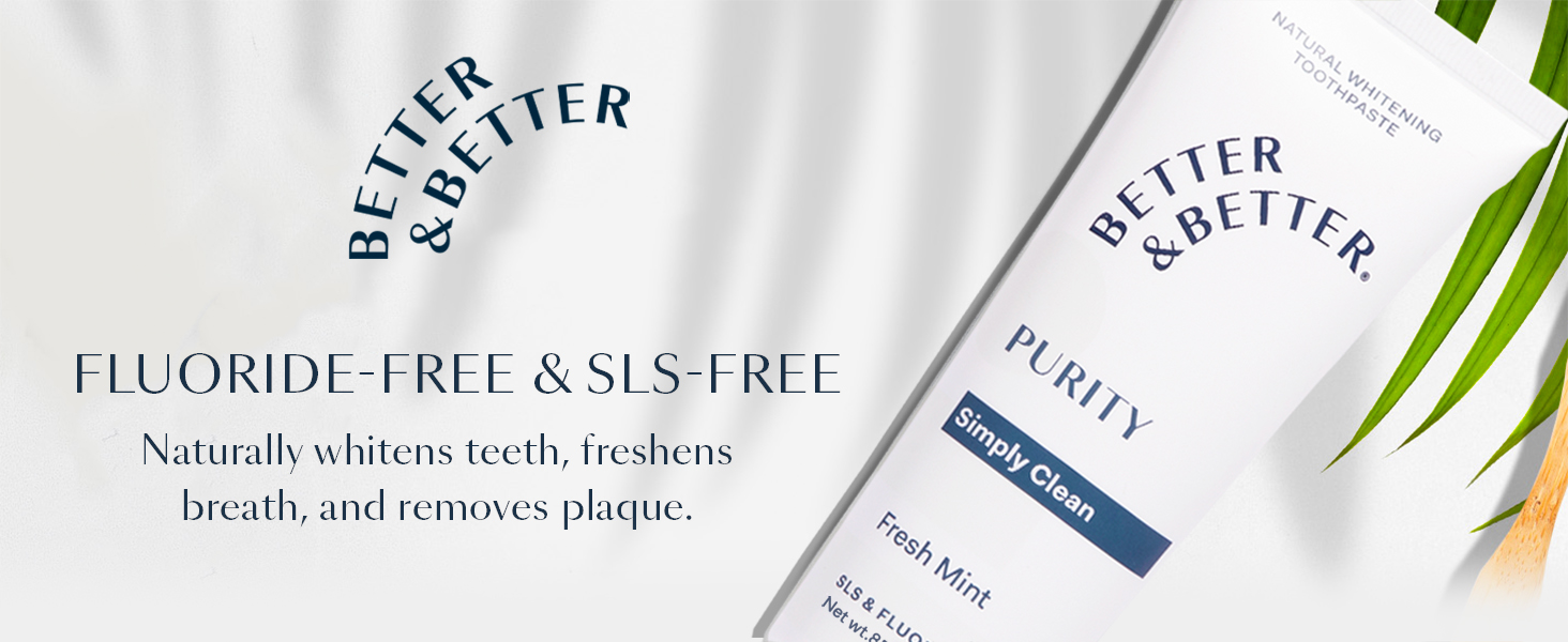 Out With the Bad - Better & Better Purity is a natural toothpaste made only with the barest of essentials that matter to your oral microbiome—no harsh abrasives, no GMOs, SLS-free (Sodium Lauryl Sulfate), and no artificial flavors, colors, or preservatives: a toothpaste so pure, it's kind of remarkable.