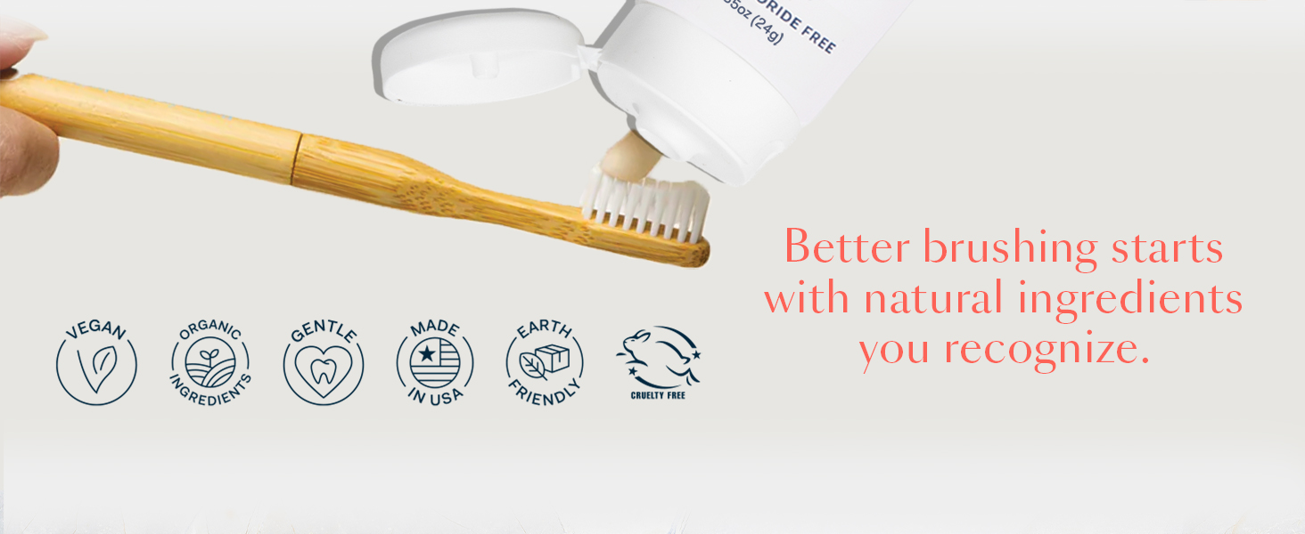 Whitens As It Cleans - With safe and gentle ingredients that help brighten pearly whites, our natural whitening toothpaste will help you get those gleaming smiles effortlessly. Because our fluoride-free formula cleans with mild foam (no SLS) and gentle scrubbers, it's also ideal for those with sensitive teeth.