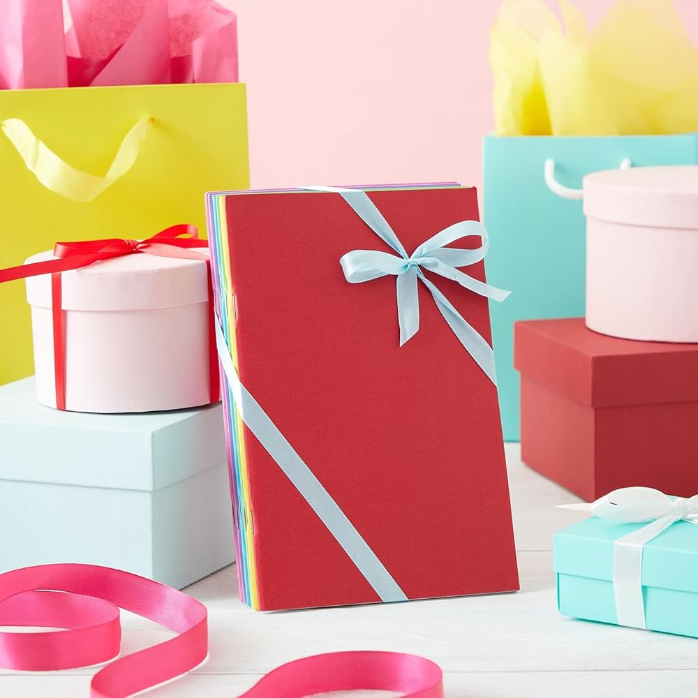 Includes 24 unlined multi-coloured notebooks for jotting down ideas, writing to-do lists, sketching drawings or doodling just to doodle! The multi-coloured 300 GSM covers are lightweight but durable for traveling. Each notebook comes with 24 double-sided sheets (48 writable pages) of 80 GSM offset paper which feels very natural for writing or drawing. These notebooks come with blank covers in pink, blue, purple, green, red and yellow and provide a blank canvas for unique cover designs and a personalised look. Use to make lists, plan out trips, jot down memories, draw, sketch or just for the occasional aforementioned doodling session! Each notebook is half-sheet sized and measures 13.4 x 21.6 cm.