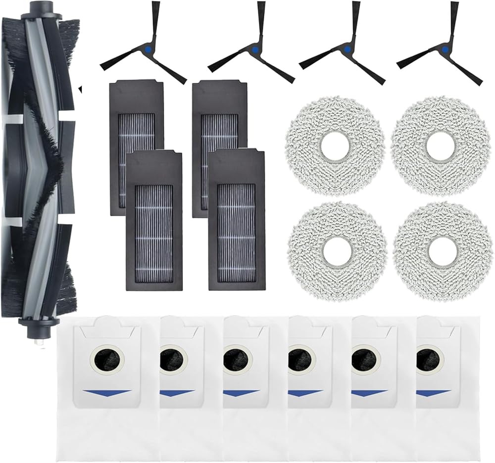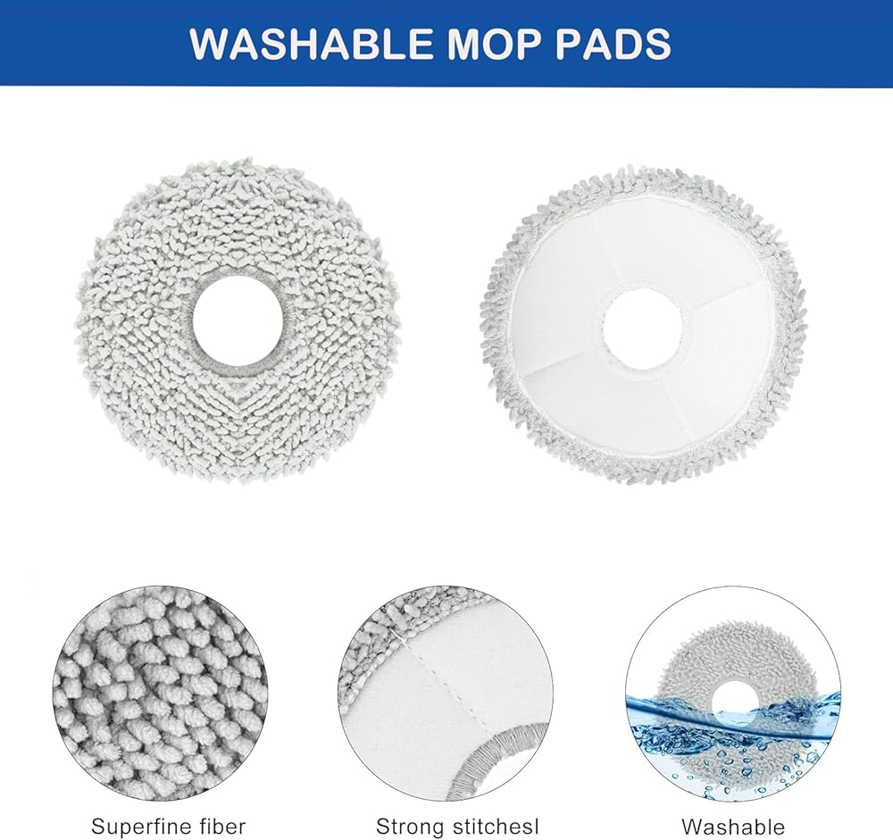 【Kit includes】The package includes 1 multi-surface rubber brush,4 mop pads,4 HEPA filters,4 side brush,6 dust bags, These replacement parts provide the same cleaning results as the original parts,ensuring a clean and tidy environment.