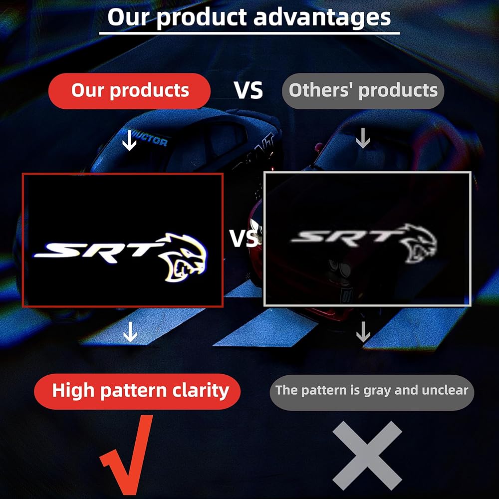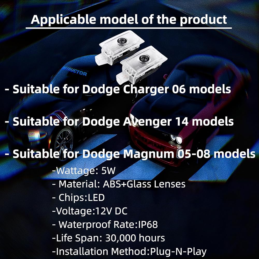 Car Door LED for Dodge, Welcome Light Projector Ghost Shadow Charger 2005-2014,Door welcome light projection light LED light, using CREE beads, suitable for Dodge 2005-2014 models.(pack of 2)