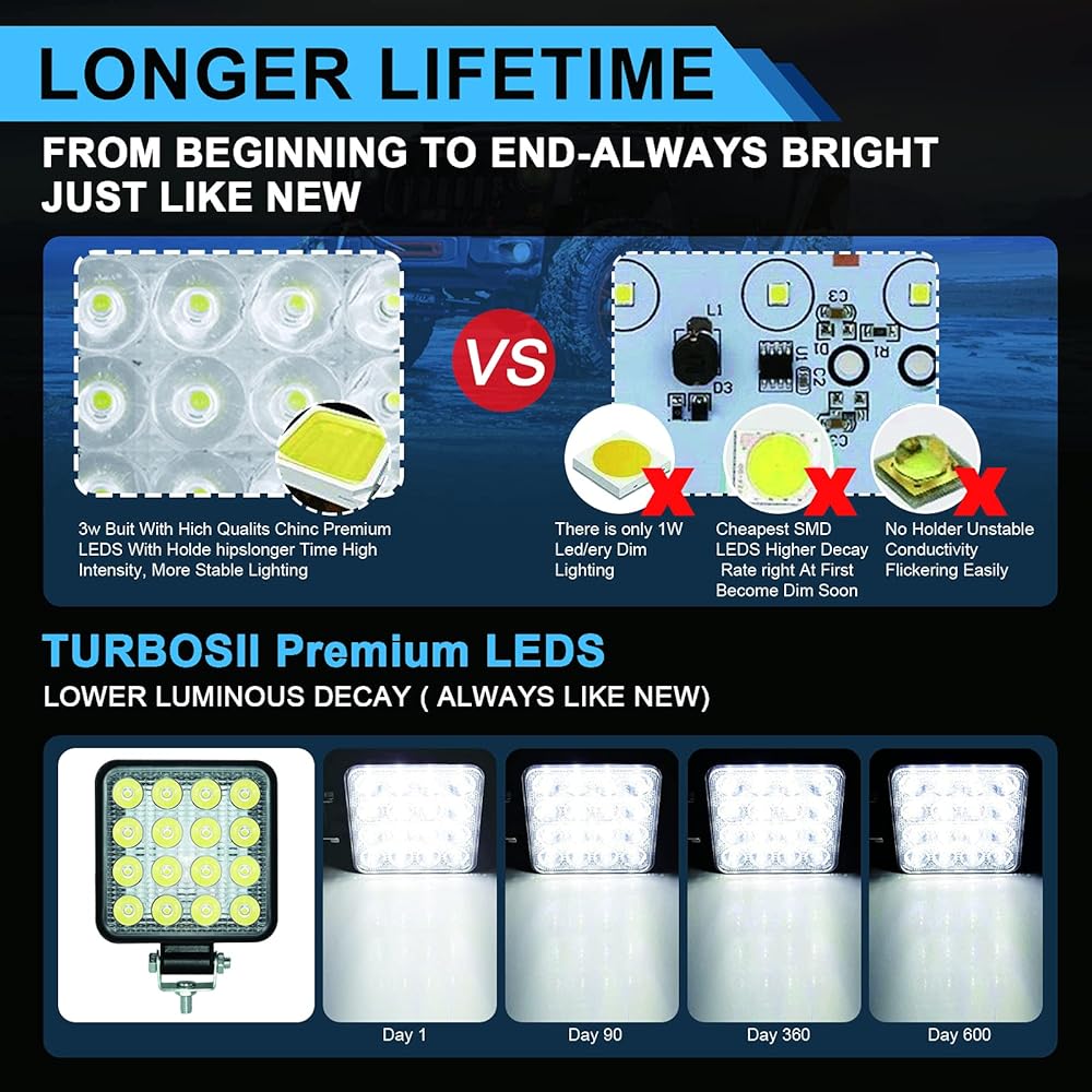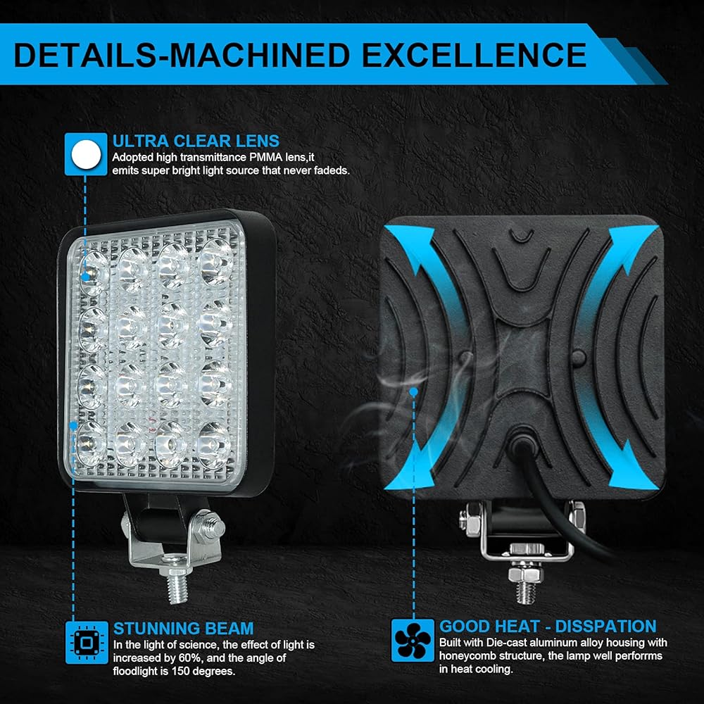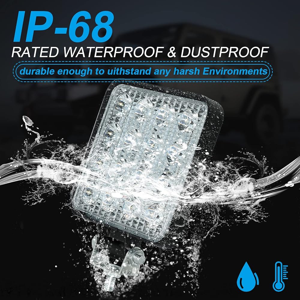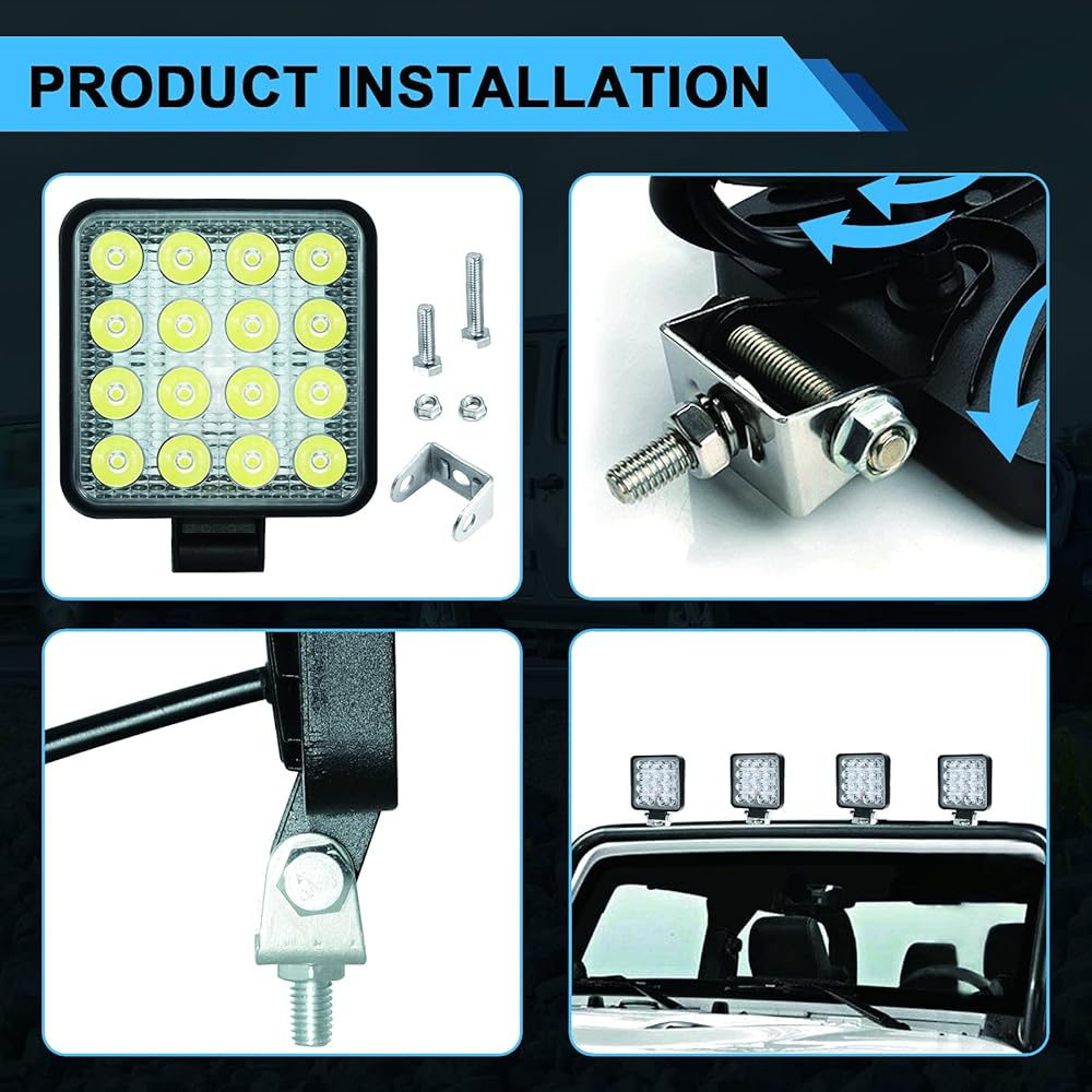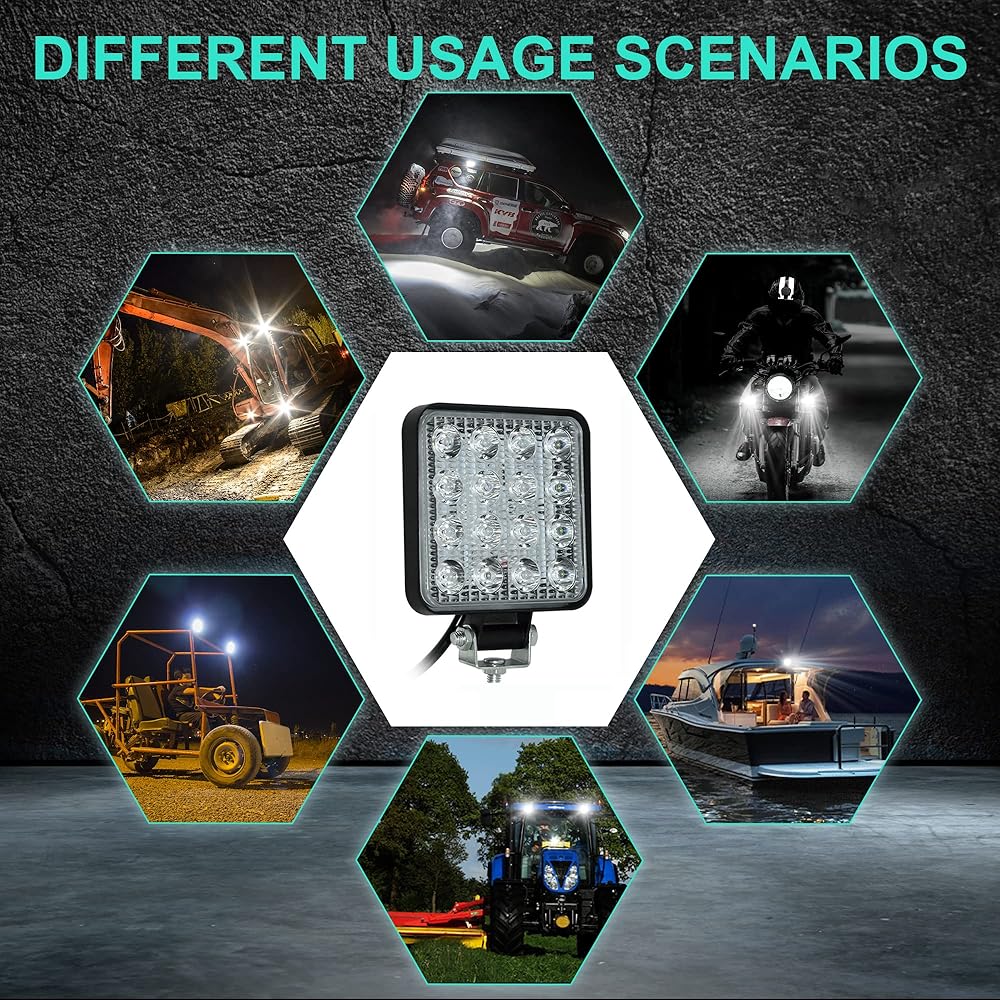 AnTom LED Truck Work Lights 10Pcs, 48W High Brightness Flood Light Bar, 4 Inch Square Pod Lights Off-Road Lights 12V 4800lm for Golf Cart Snow Blower, ATV, SUV, UTV, Jeep, Boat