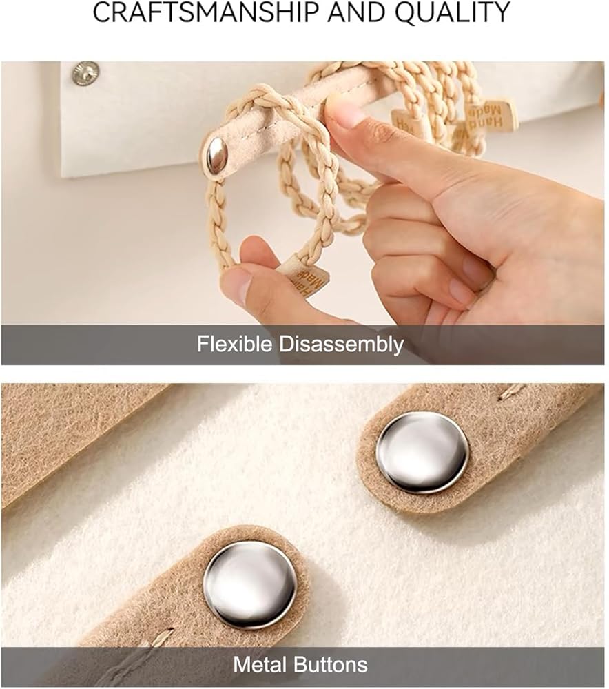 【Premium Felt Material】Made of natural felt , this hair clips holder is odorless, long lasting and not easy to deform with double ropes and double-layer on the hole. Ribbons adopt polypropylene fiber, safe and sturdy, not easy to break or wear.