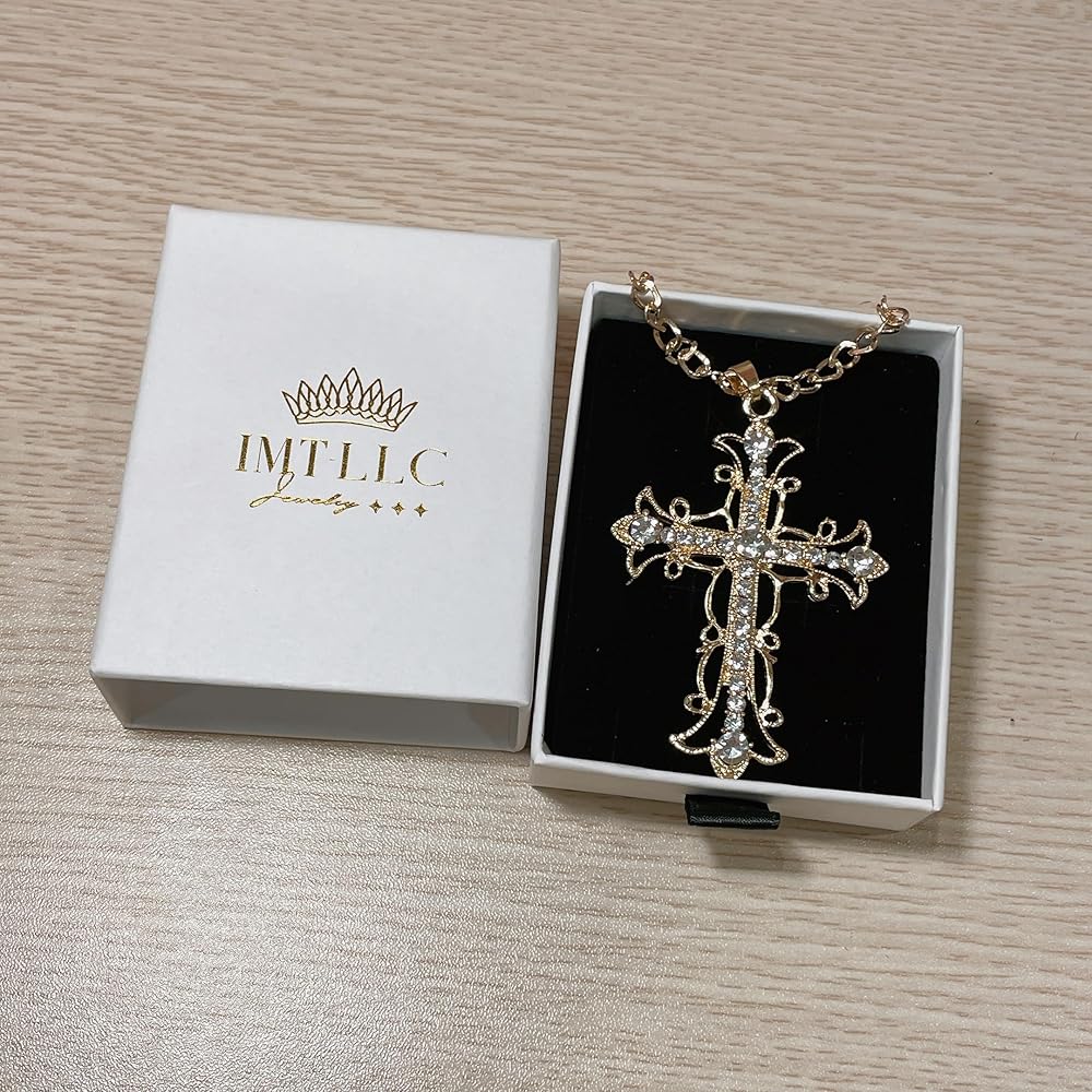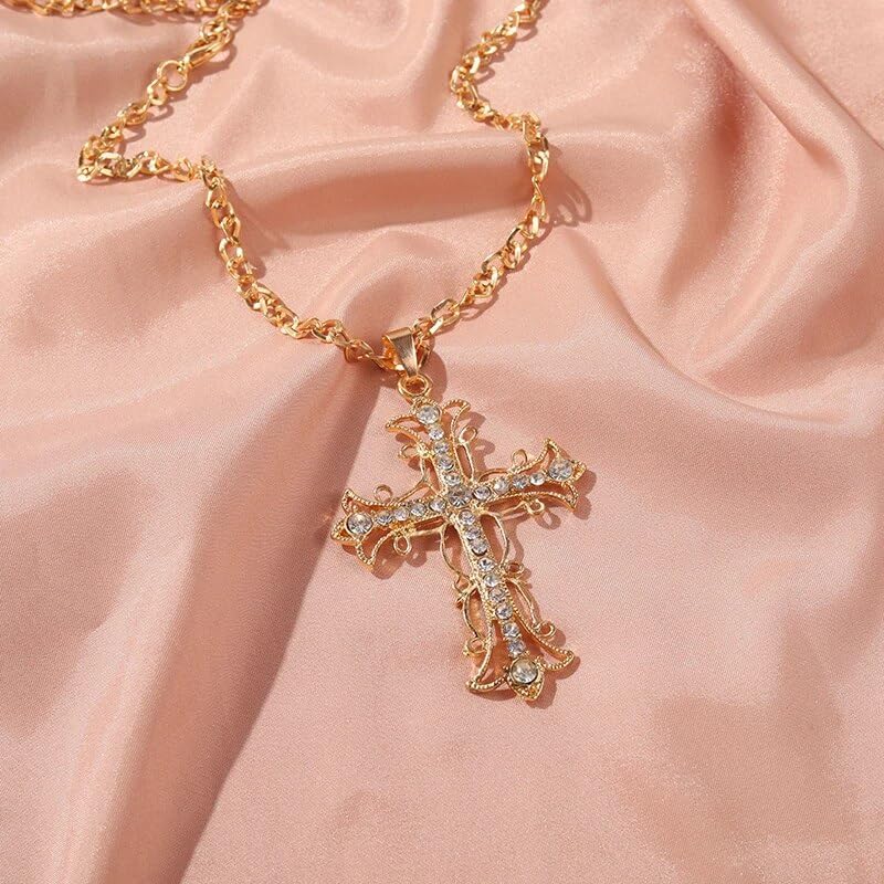 Charm Inlaid Rhinestone Hollowed Out Metal Cross Pendant Necklace Color Necklace Friend Date Jewelry