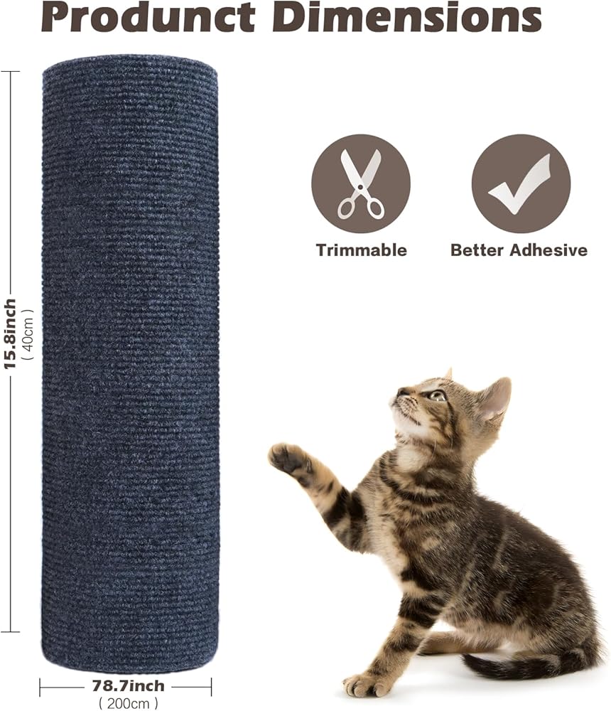 【Oversized and Cuttable】Our cat scratching mat measures78.7"x15.8"/40*200cm,easy to cut and shape,the edges are not easy to come off and messy after cutting,the cat scratching mat can be cut into any shape,suitable for cat shelves,wooden cat trees,cat towers,sofas,or other furniture,it's a great protector and cat scratching board.Bring endless fun for your beloved cat.