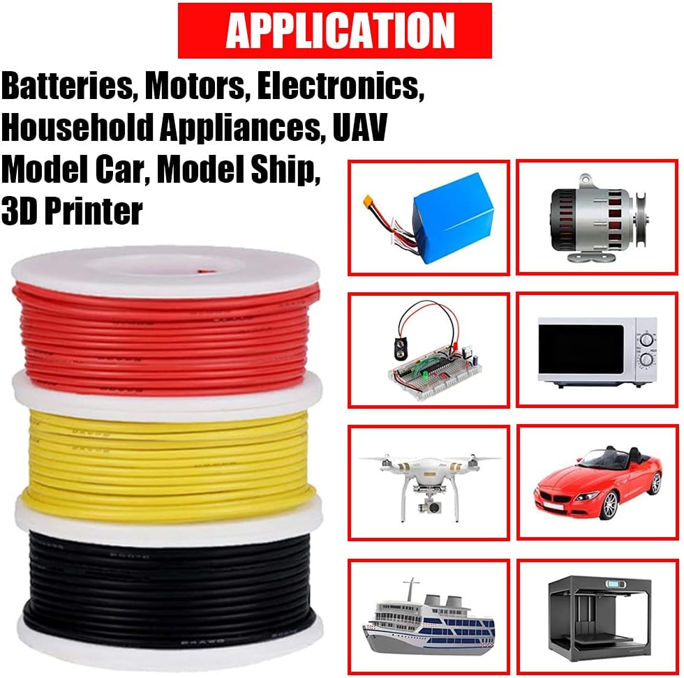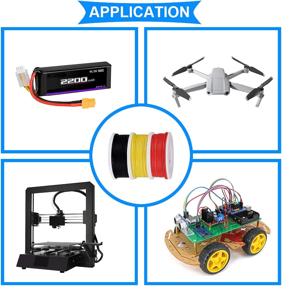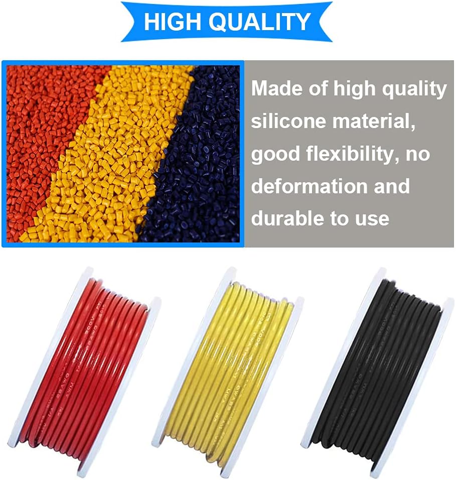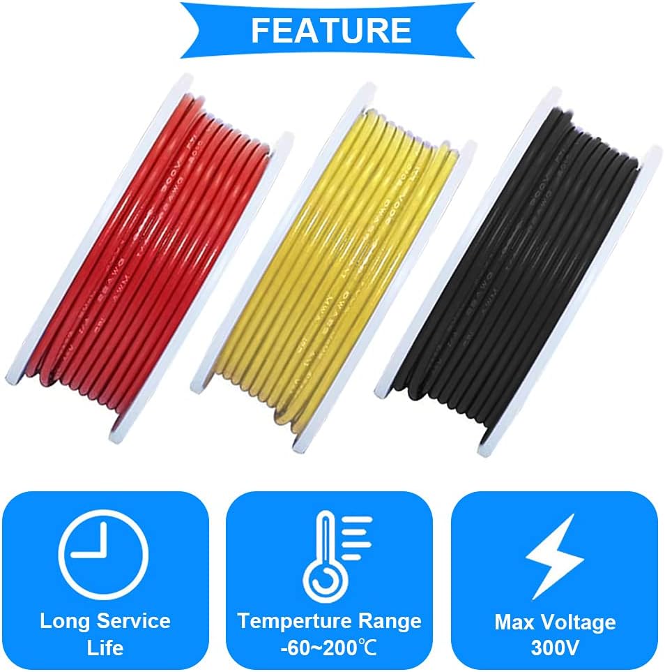 - 26 AWG Stranded Wire:10m/33ft per roll;7 Color: Black, Red, Blue, Yellow, White, Green, Purple