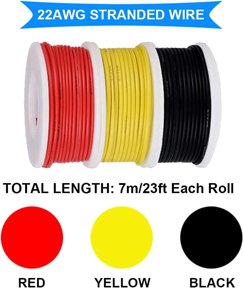 DAOKI 22 Gauge Silicone Wire Kit - 3 Color, 7M/23ft Each - 300V Tinned Copper Stranded Electrical Wire Assortment for DIY
