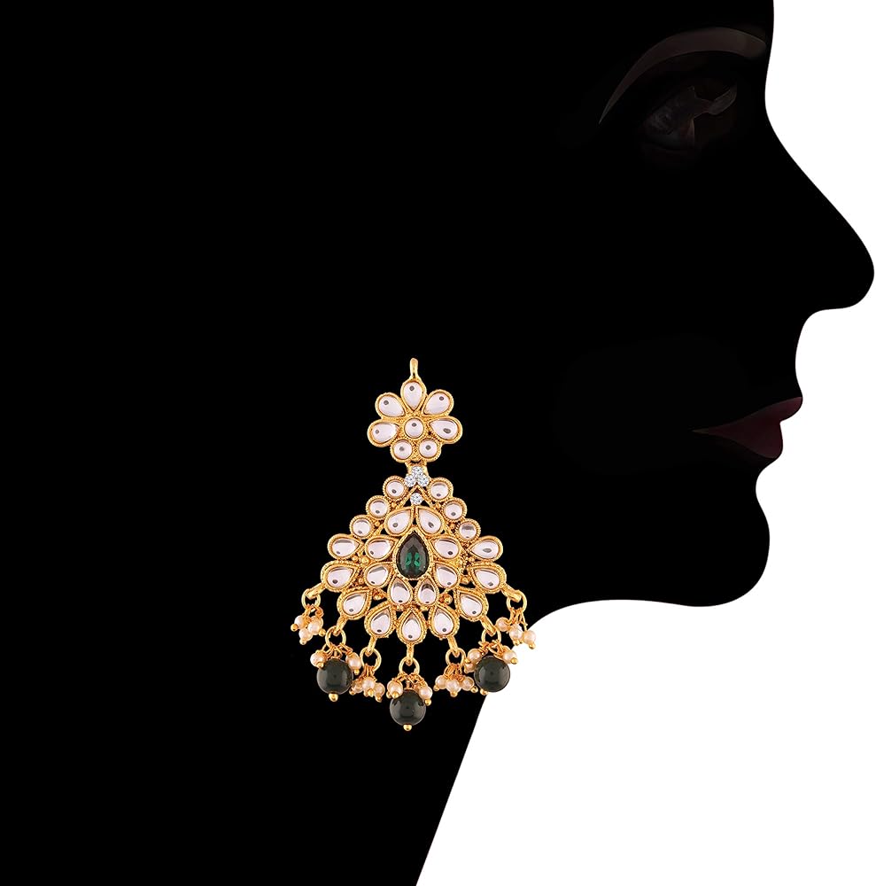 Graceful and flawless: give yourself that beautiful look and make others jealous with our traditional necklace set. It has a high quality imitation emerald green stones along with unique American diamond look like which gives it an edge over other earrings. This is a one of a kind design which will go with all types of dresses