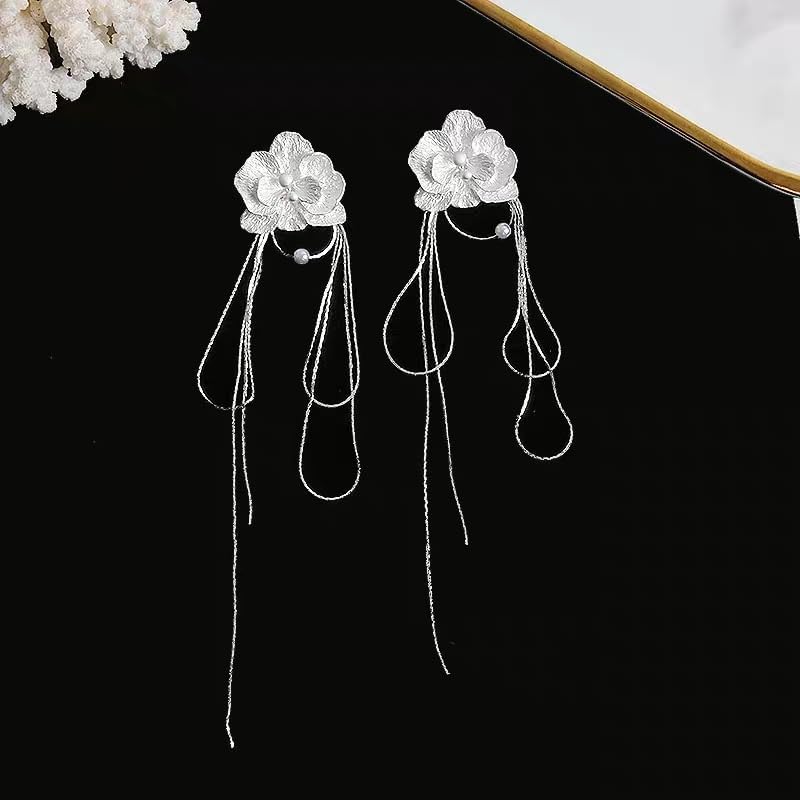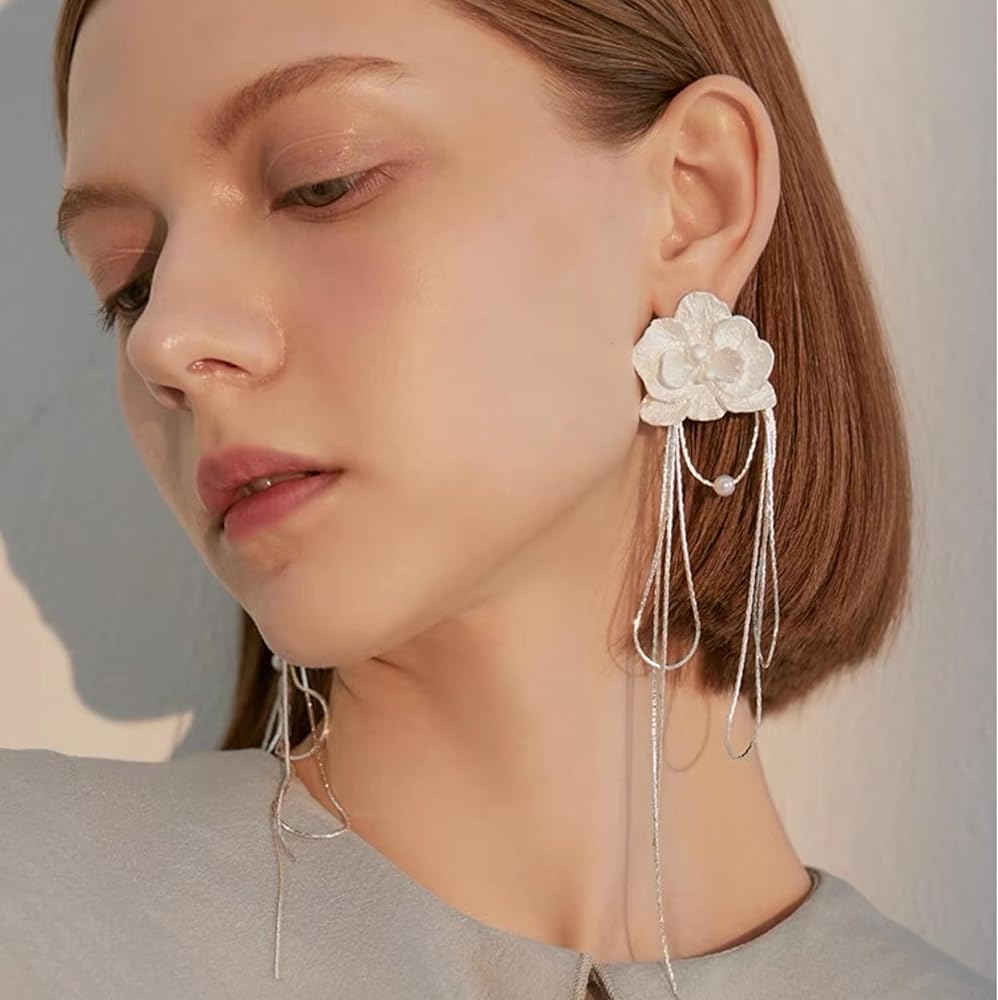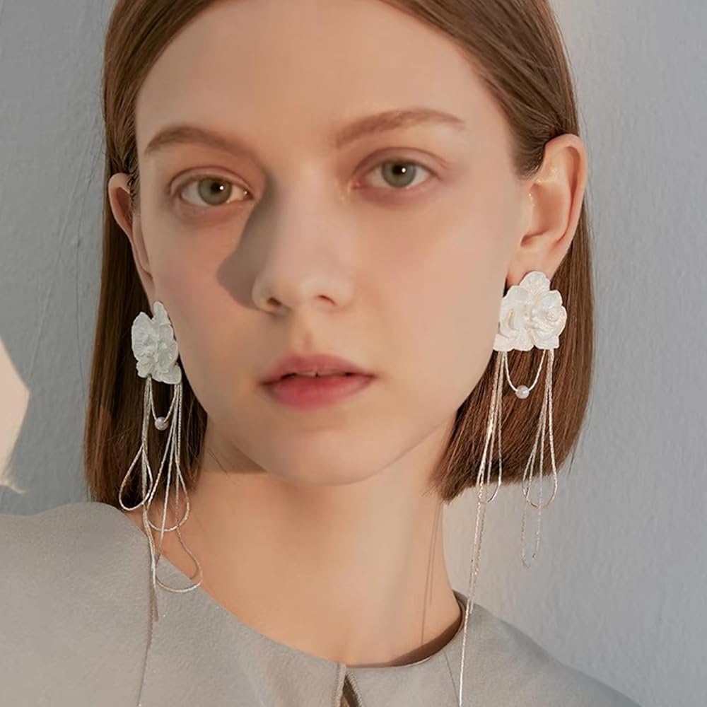 The earrings are made of 925 silver pillars, you do not have to worry about the discomfort caused by ear allergies, the flowers and tassel chain parts are made of titanium steel silver plated process material, the structure is strong, not easy to deform, and does not fade.