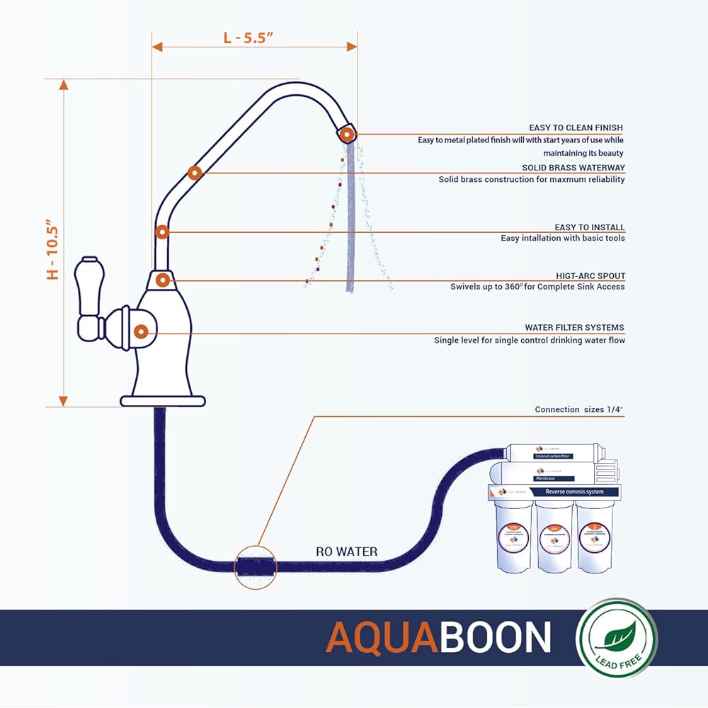 Versatile Compatibility: Aquaboon`s drinking water faucet for kitchen sink is compatible with various filtration systems, including reverse osmosis, under-sink filters, and ultra-filtration systems, offering versatility in installation options. Please note that this is NOT hot water faucet, it is designed for cold water use only.