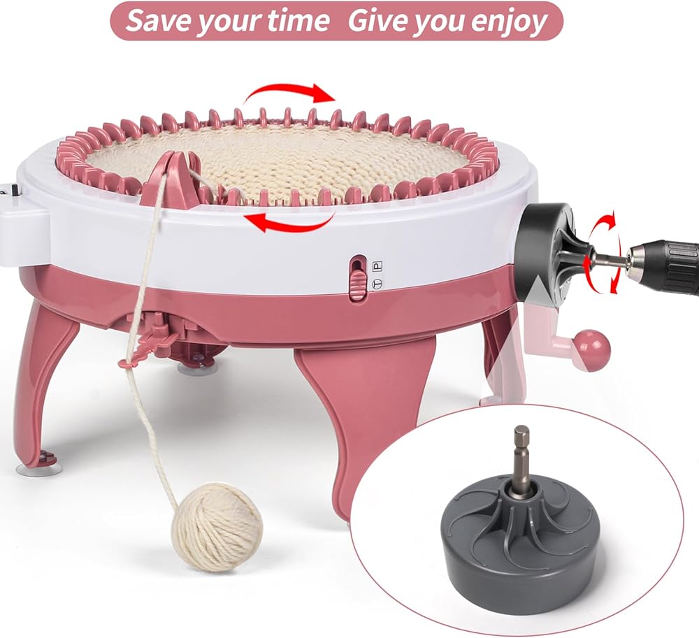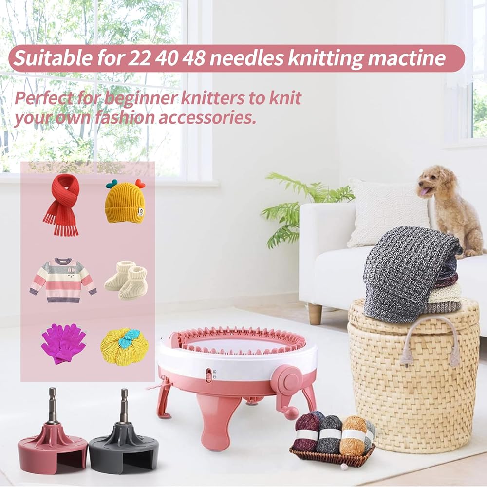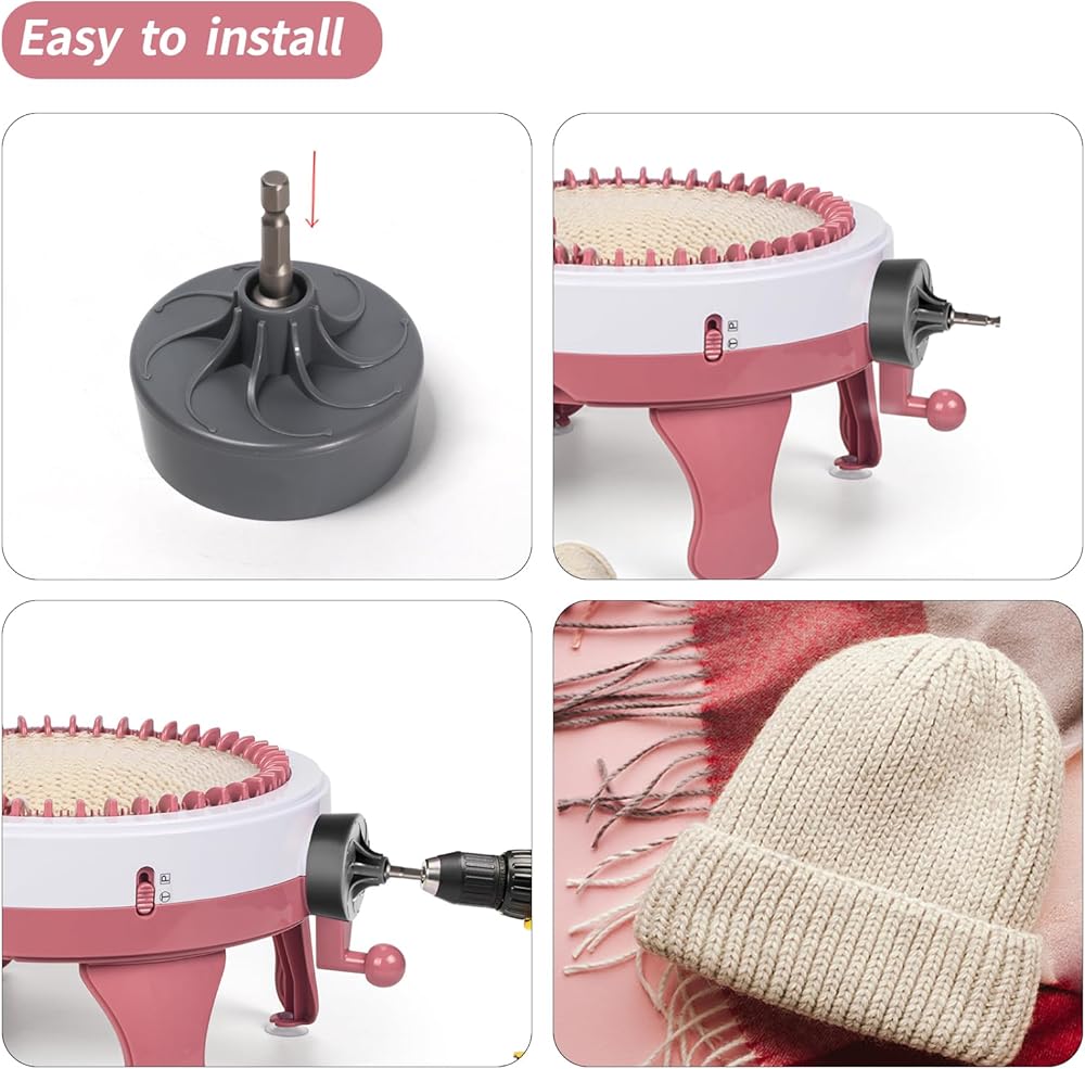 【Quick Knitting Machine Attachment】: Using a knitting machine adapter saves you at least 50% of the time to make a knitted hat compared to using traditional hand knitting! Knitting fun quickly. Note: Avoid using an electric drill running at high speed, which may damage your machine and accessories, we recommend using this power adapter at medium speed. (Maximum 200 rpm)