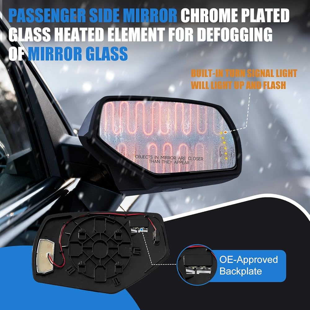 【Easy to Install】: Identical mounting point with factory mirror, fit with the existing electrical wiring perfectly. Wiring harness must be unplugged from existing backing plate and plugged into the new backing plate before installation.