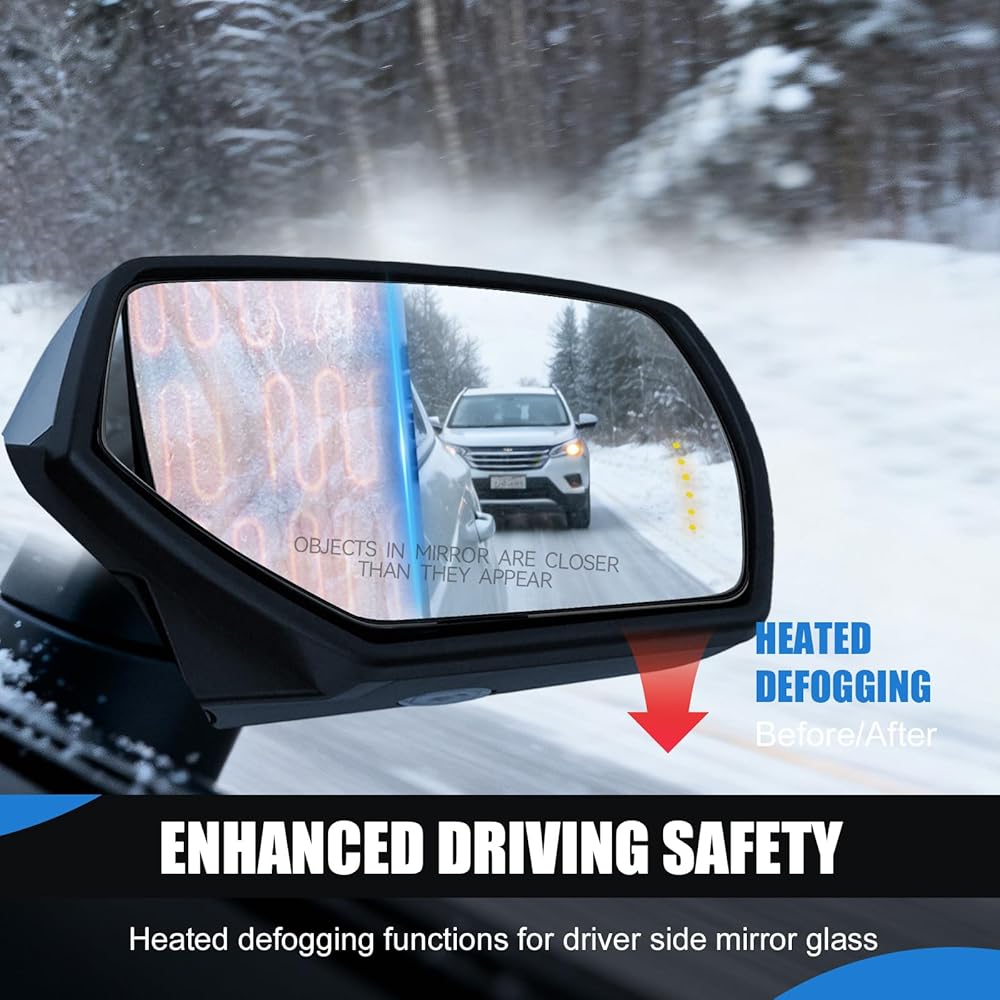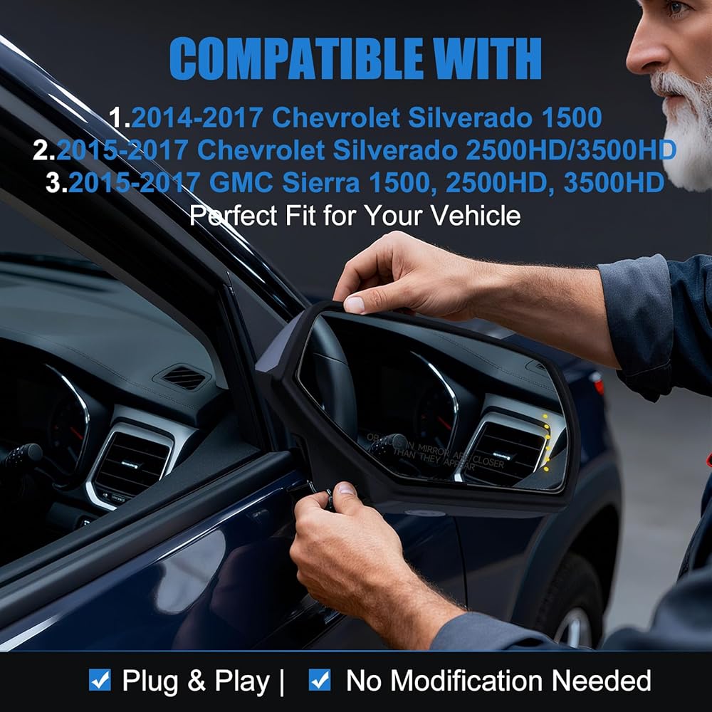 【Compatibility】: This side mirror compatible with 2014-2017 Chevy Silverado 1500 2500HD 3500HD, 2015-2017 GMC Sierra 1500 2500 HD 3500 HD. Please find the detailed fitment information on the photo and product detail part.