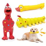 【WHAT YOU'LL RECEIVE】Package included 4 rubber chickens in different shapes and colors, a red spotted chicken, a yellow spotted chicken and 2 yellow chickens with 3d bumpy particles simulating skin. With different textures and colors, there is always a rubber chicken toy that is your dog's favorite.