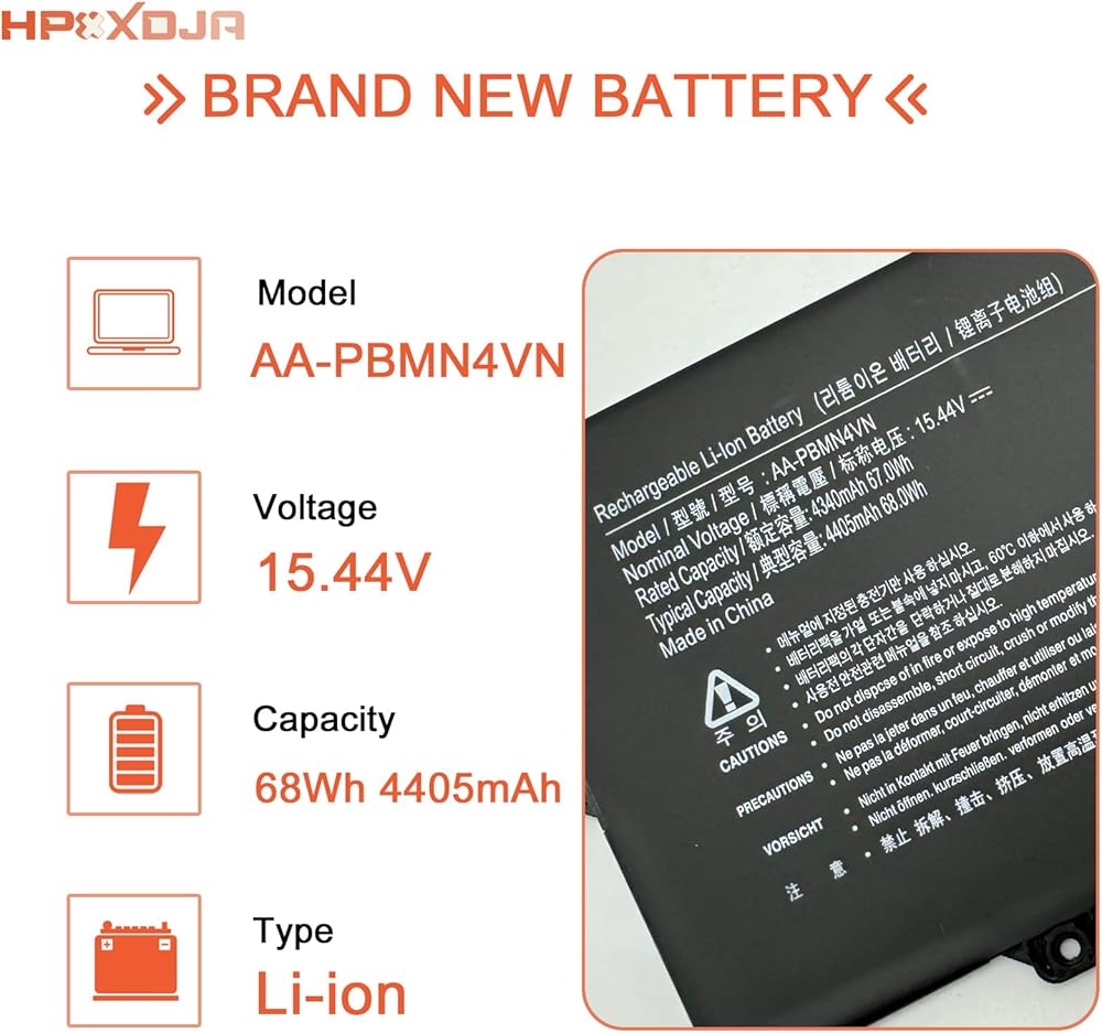【Battery Specifications】 AA-PBMN4VN battery for Samsung. Battery Type: Li-ion. Capacity: 68Wh 4340mAh. Voltage: 15.44V. WHAT YOU GET: 1 * AA-PBMN4VN battery. 1 * User Manual. 4 * Screwdrivers.